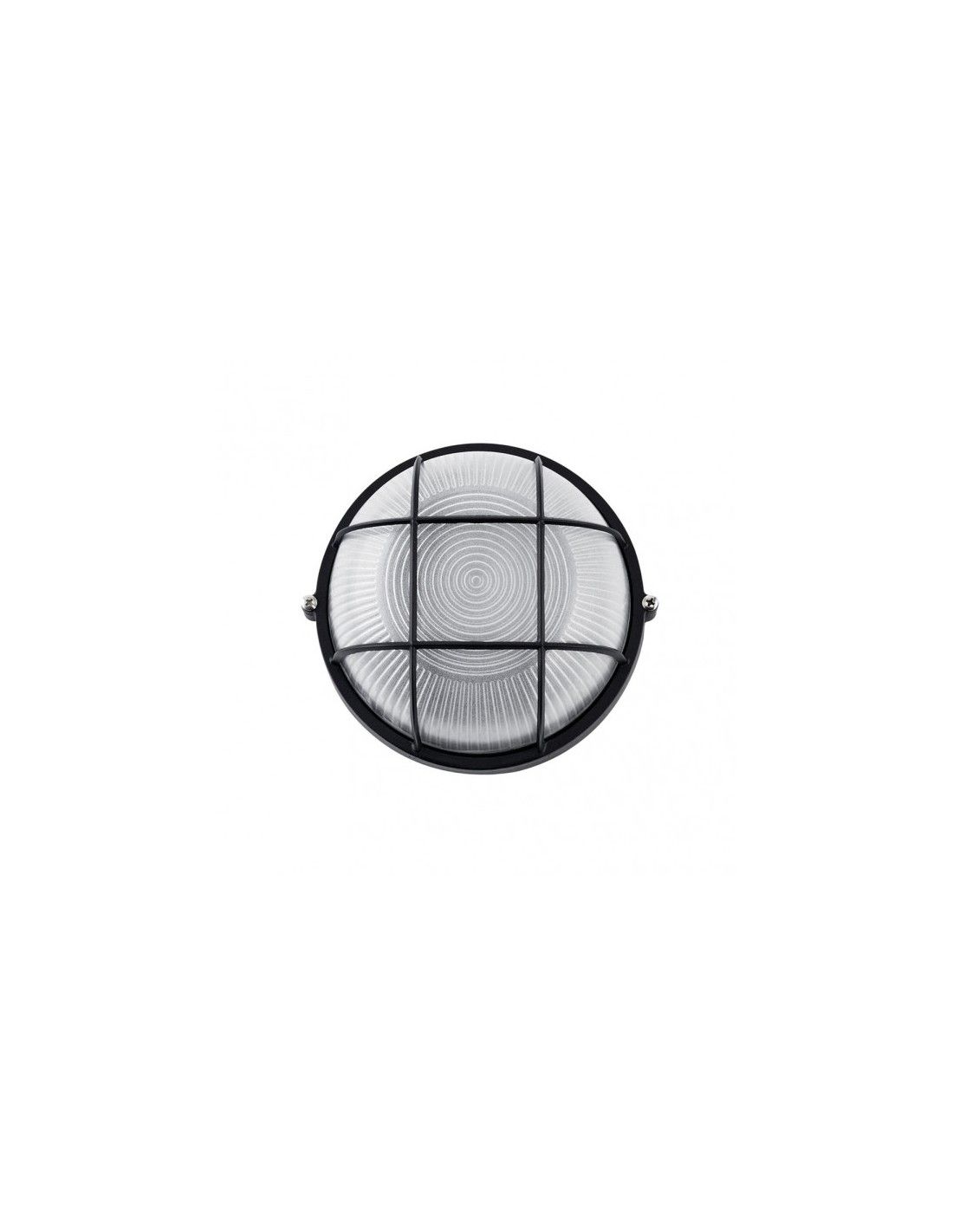 Runde Außenwandleuchte der APUS-Serie aus SCHWARZEM Aluminium und Glas. Es hat Abmessungen von 9 x 17,5 x 17,5 Zentimeter. Es hat eine E27-Lampenfassung. Glühbirne nicht enthalten. Es hat einen Schutzindex von IP44. In derselben Serie erhältlich, groß rund mit 25 Zentimeter Durchmesser und oval in zwei Größen. Sowohl Designs als auch Größen in Schwarzweiß.