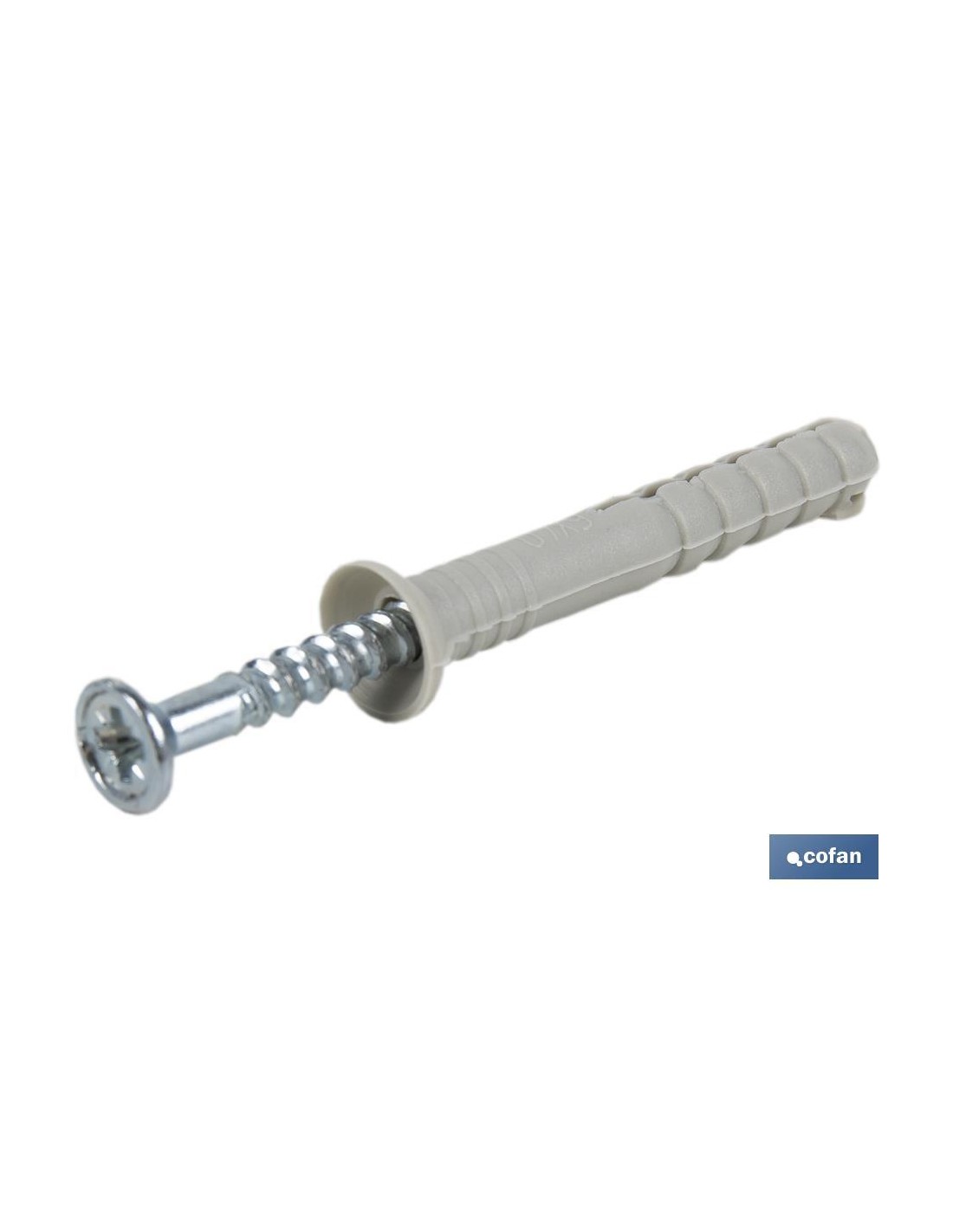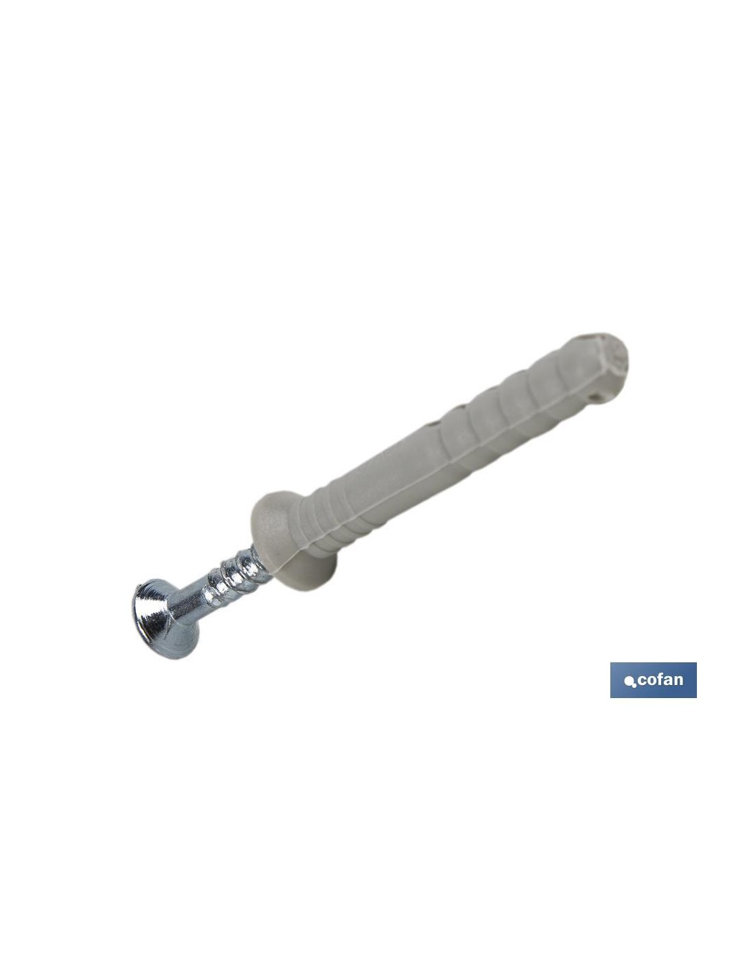 Wir empfehlen die Verwendung für die Befestigung von Holzunterkonstruktionen, die Verbindung von Wänden oder Gipskartonprofilen sowie für die Installation von Klammern für Kabel und Rohre. Jeder Dübel besteht aus Nylon und verfügt über eine vormontierte Schraube aus verzinktem Stahl, die Haltbarkeit und Festigkeit gewährleistet.