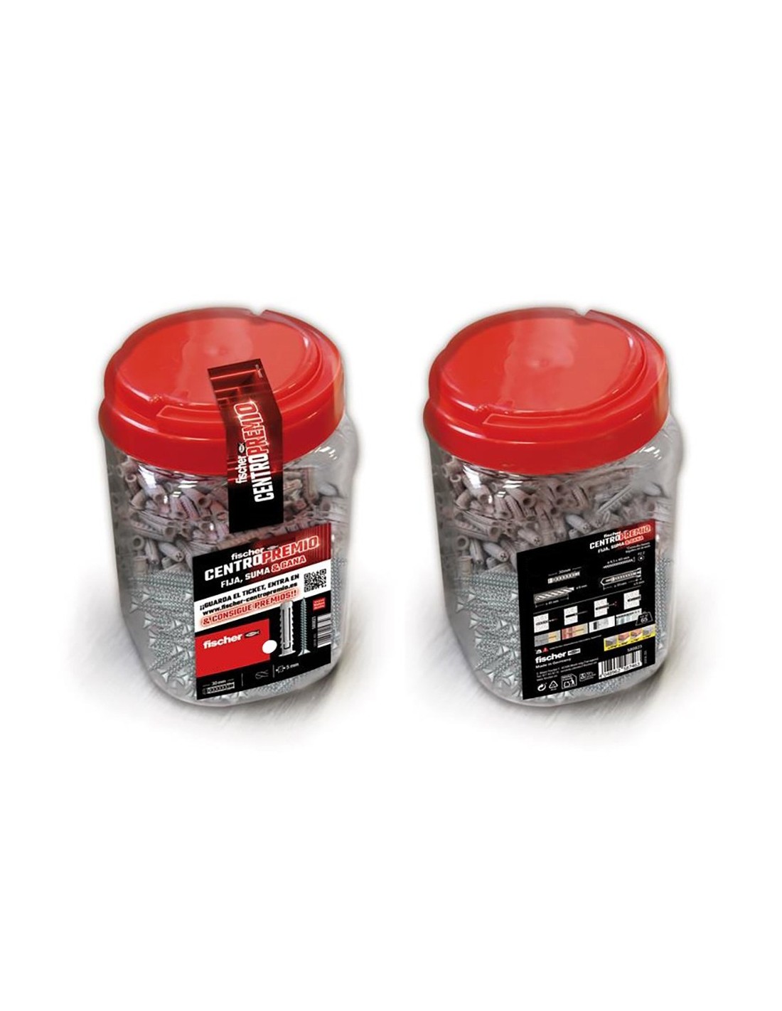 Großer Behälter mit sx-Schrauben und Schraube. Vollständige Verankerungslösung, die einen sx-Nylon-Schrauben mit ø8 x 40 mm und eine Schraube pz2 mit ø5 x 55 mm enthält. Maximalbelastung 70 kg, für eine schnelle und sichere Montage.