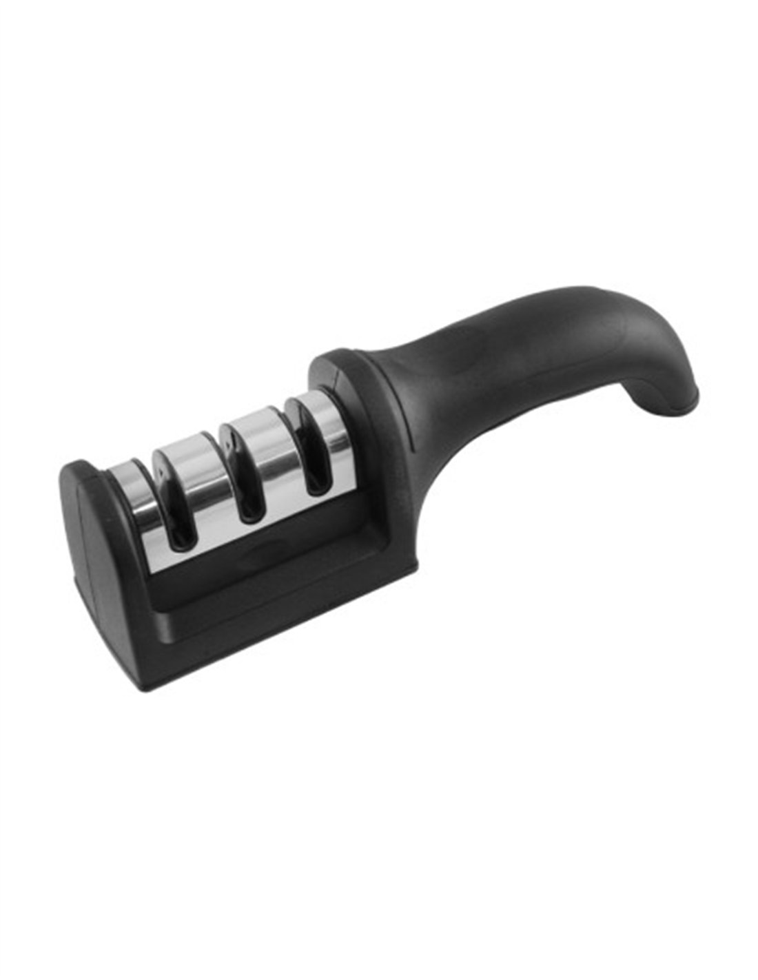 - Drei Schärfschlitze: für verschiedene Klingentypen