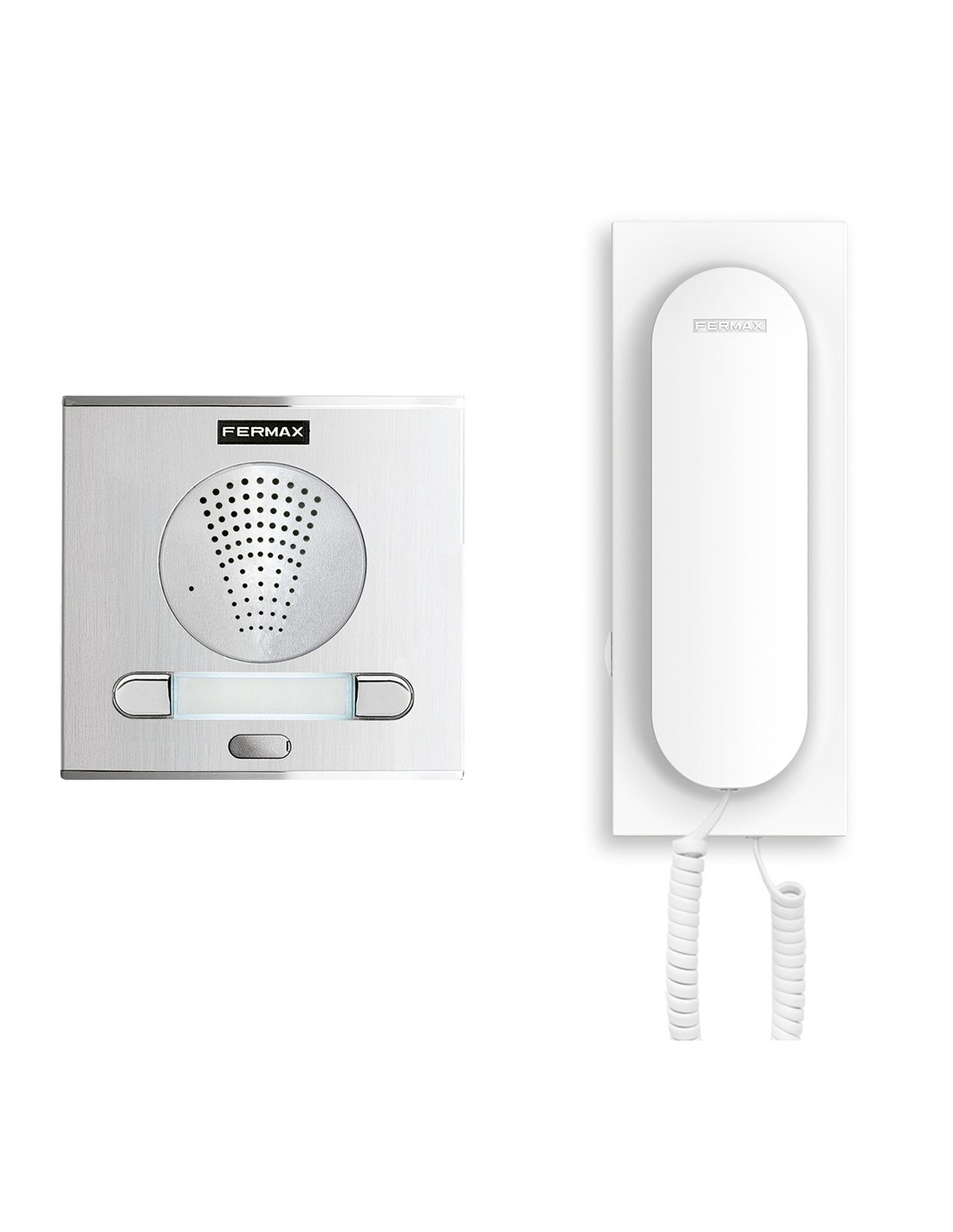 Incluye: 40004 Placa CITY DUOX PLUS 2/L. S1: 130x128. 8948 Caja empotrar kit S1: 115x114x45. 3444 Teléfono VEO DUOX PLUS (x2). 4826 Alimentador+filtro DIN6 24VDC-1.5A 4802 Alimentador 12Vca/1A. DIN4. 3255 Adaptador línea DUOX PLUS
