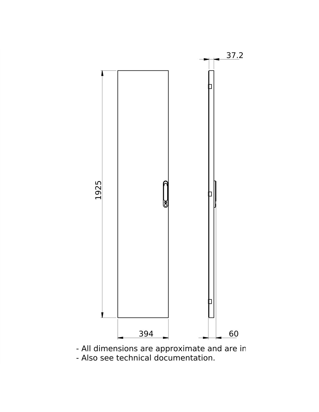 - Abmessungen: 400 mm breit, 2000 mm hoch und 30 mm tief.