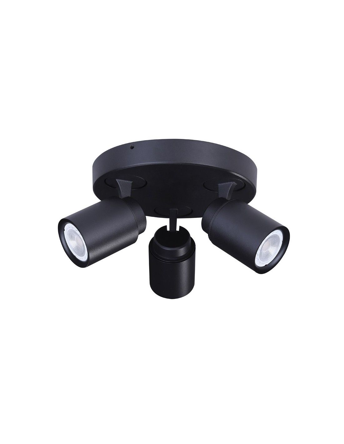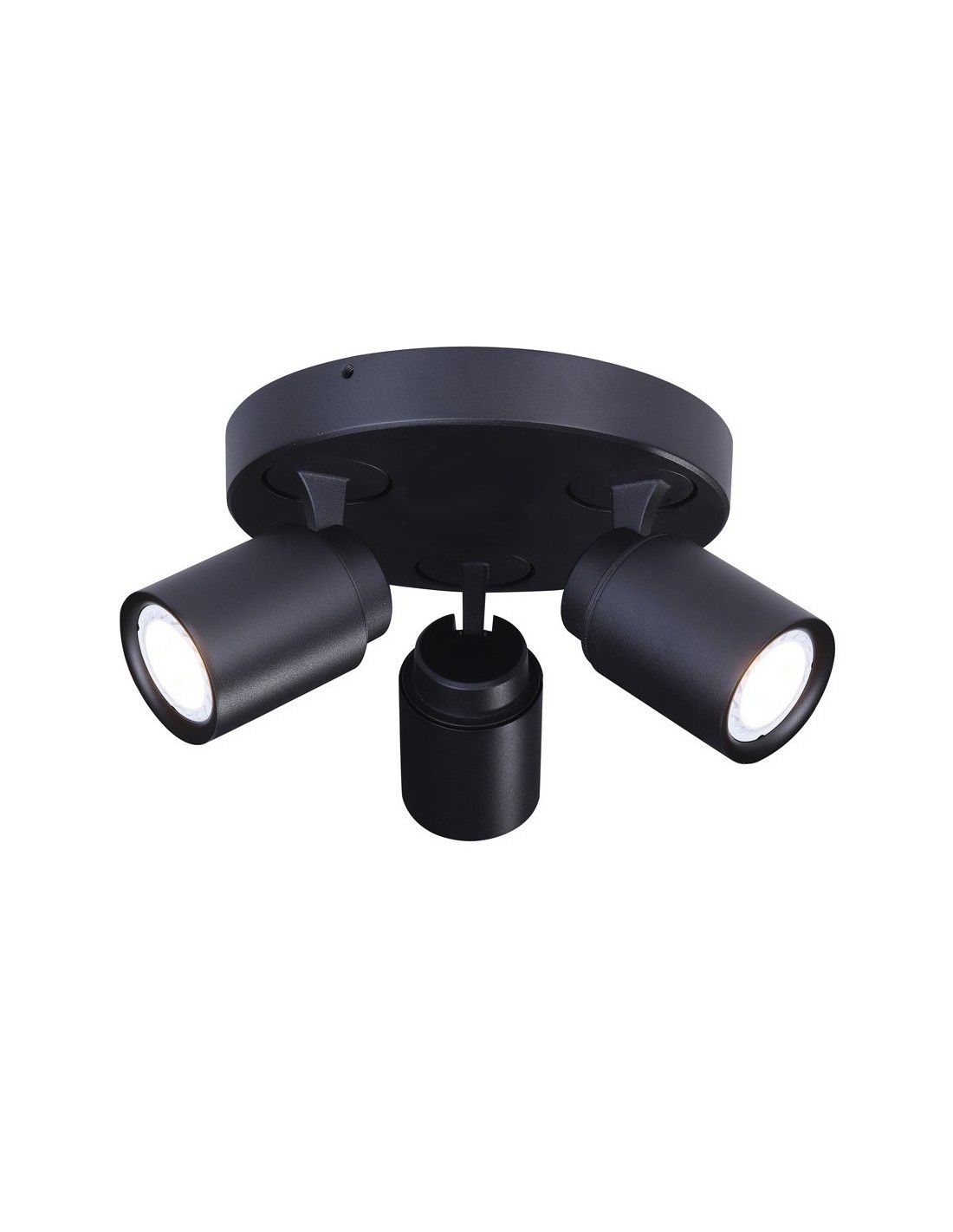 Deckenleuchte mit drei SCHWARZ lackierten Aluminiumstrahlern für GU10-Lampen, nicht im Lieferumfang enthalten. Sie können das Licht lenken, indem Sie den Scheinwerfer auf sich selbst drehen oder vertikal bewegen. Einfache Installation der Glühlampe durch Abschrauben der Glühlampe.