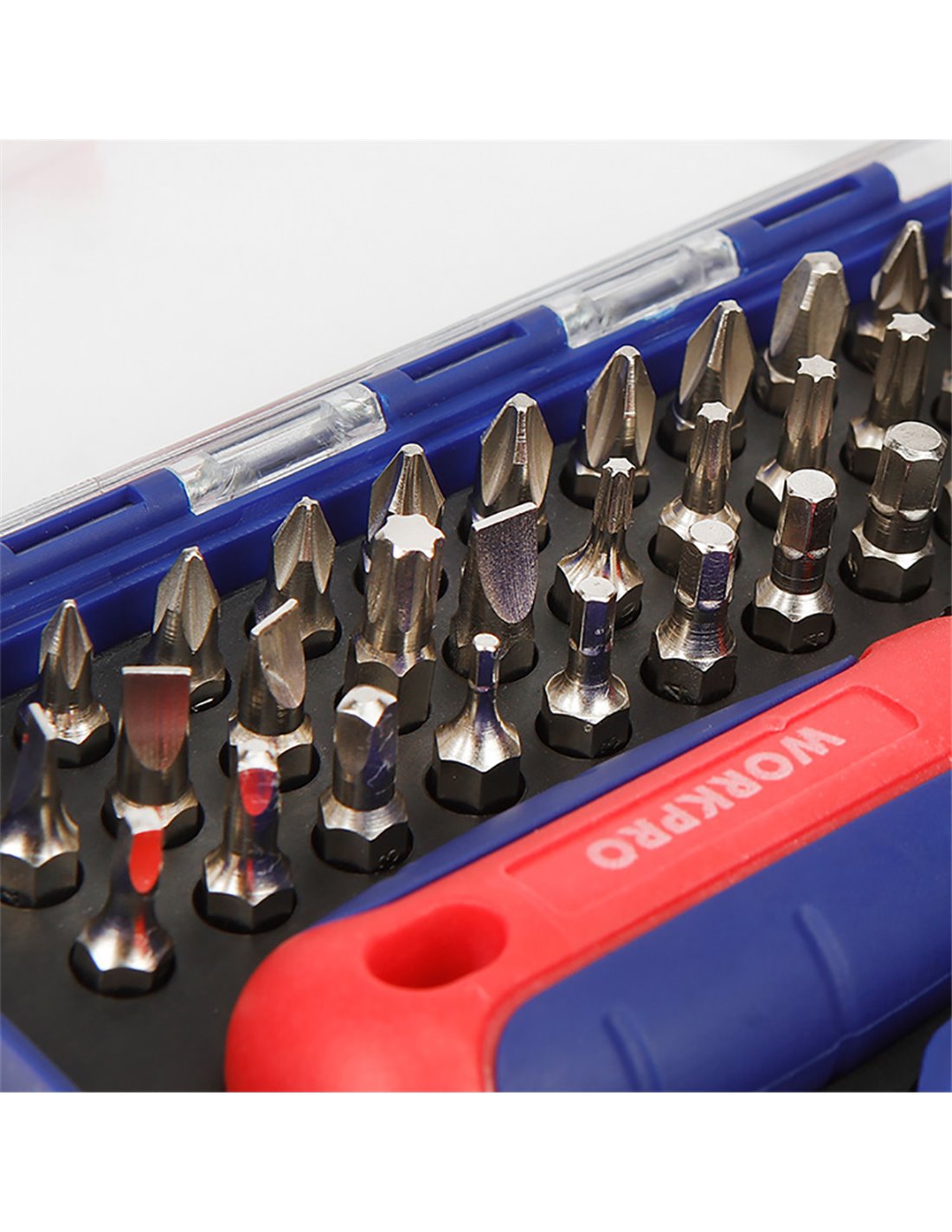 - 37 Bits in verschiedenen Größen und Formen für eine große Vielfalt Anzahl Schrauben: SL, S0, S1, S2, S3, PZ1, PZ2, T10, T15, T20, T25, T27, T30, H2, H3, H4, H5, H6, PH0, PH1, PH2, ph3.