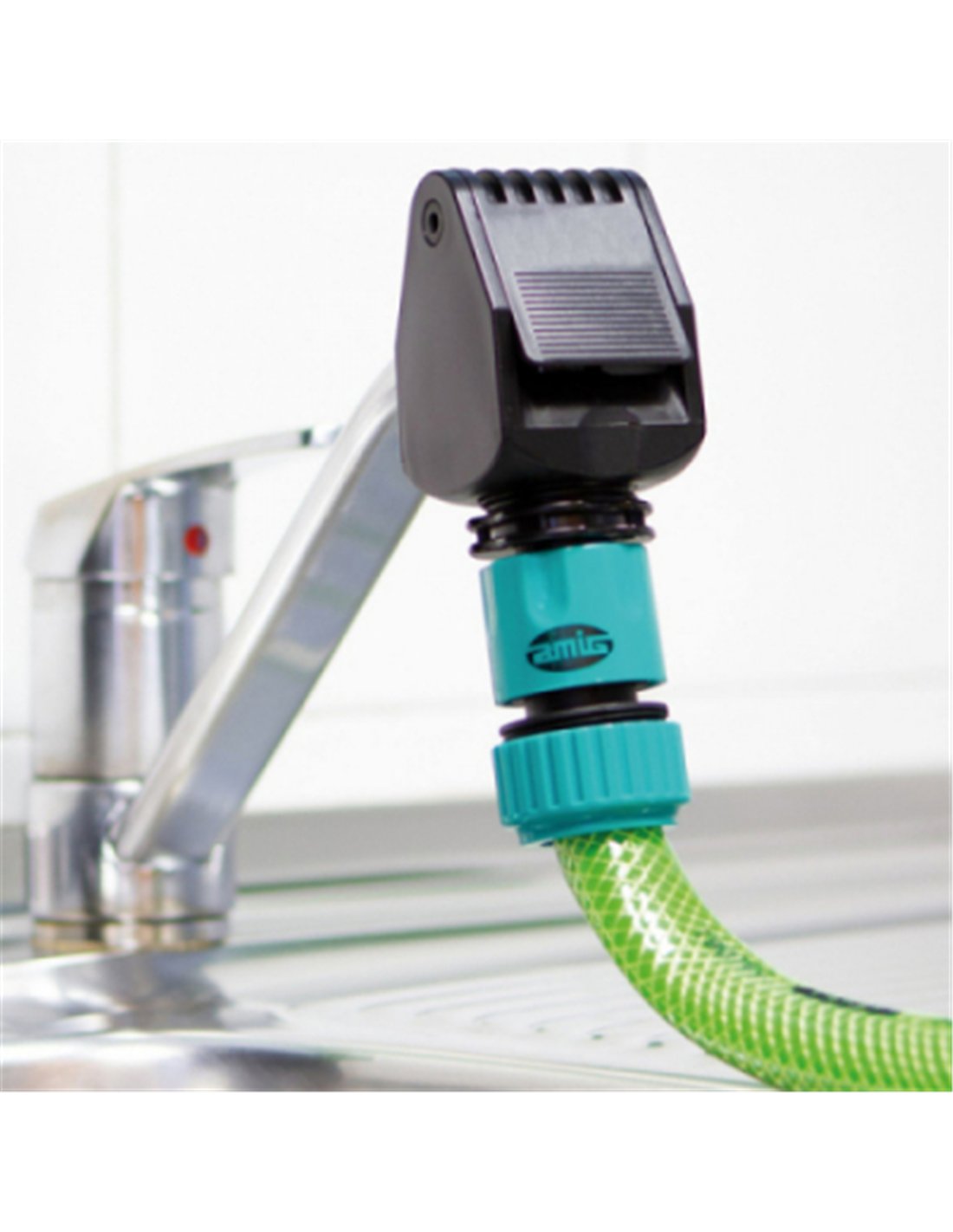 El adaptador grifo universal para manguera 24061 2075 amig es la solución perfecta para conectar tu manguera de forma rápida y sencilla a cualquier grifo doméstico. Convierte una toma de agua convencional en un práctico enchufe rápido, permitiéndote realizar tareas de riego, limpieza o llenado de recipientes de manera eficiente.