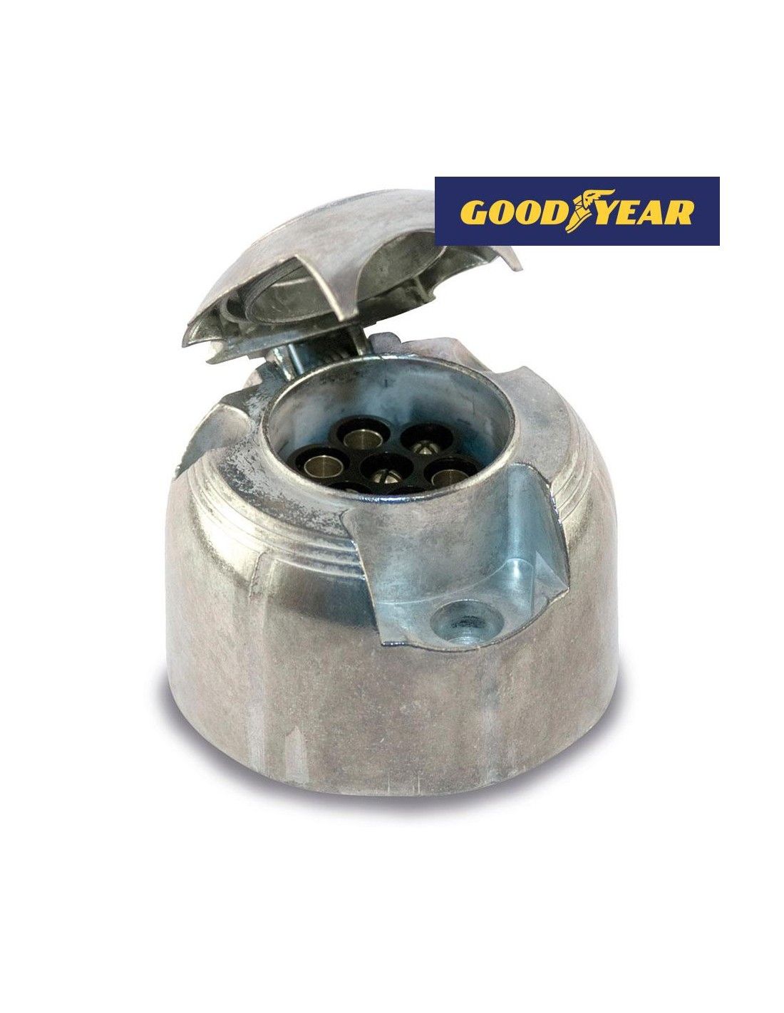 La Conexión Hembra Goodyear de Remolque Metálica 7 Polos es un accesorio de alta calidad y resistencia para remolques. Con esta conexión, podrás asegurar una conexión segura y estable entre tu vehículo y remolque, garantizando una transmisión eficiente de la señal eléctrica.