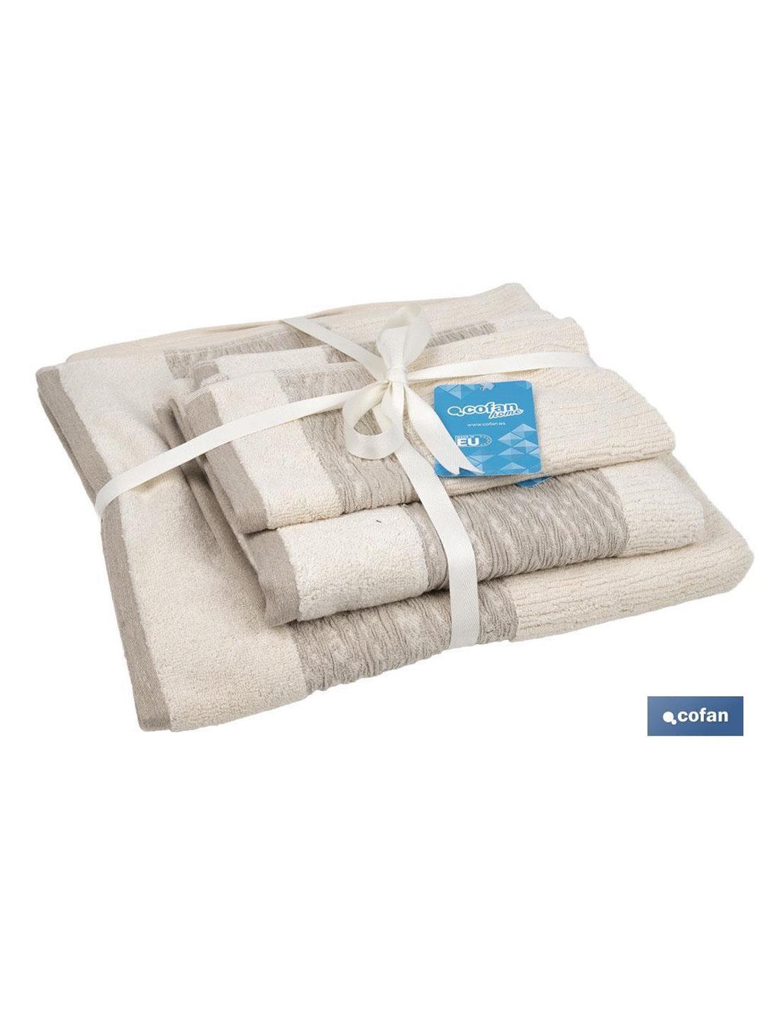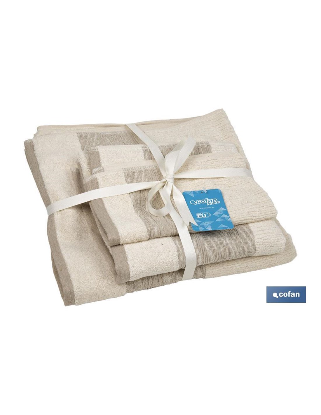Juego de 3 toallas de color nature con 600 g/m2 | Gama Alma | Set de toallas 95 % de algodón y 5 % de lino