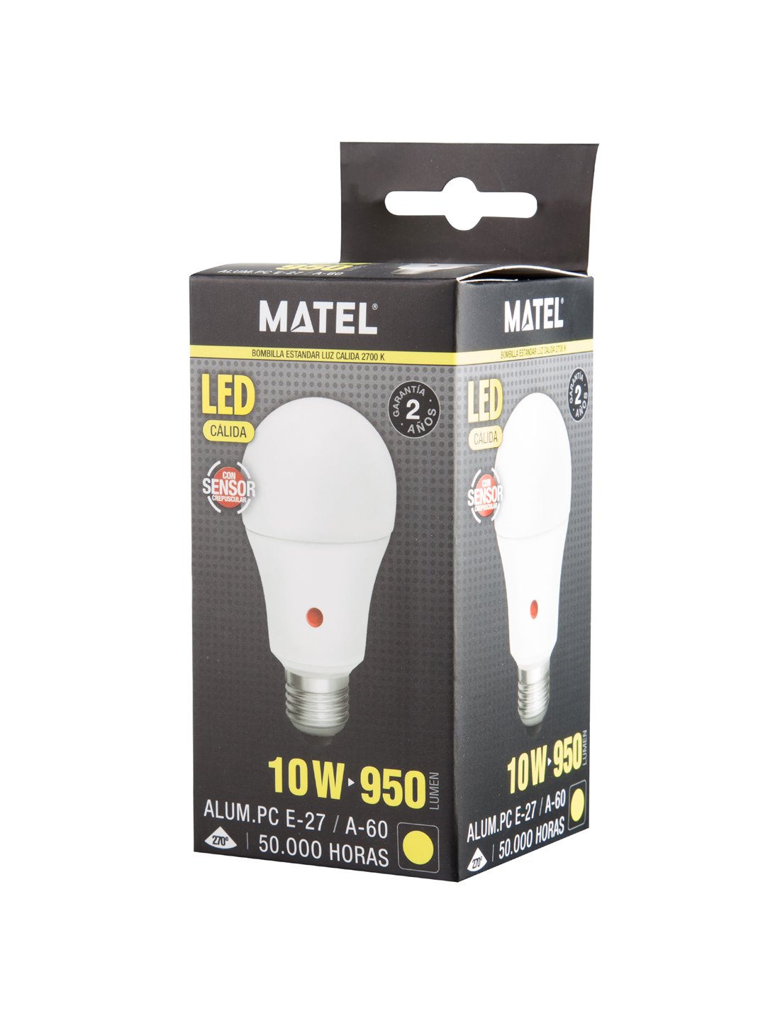 Disponible Bombillas de led E27 Bombilla led matel crepuscular y movimiento E27 10W 2700K MATEL ALFA 23786 11,24 € Encendido electrónico instantáneo.Ahorro del 90% de energía.Clasificación: F.Hasta 50.000 horas de rendimiento.Dos años de garantía. Añadir