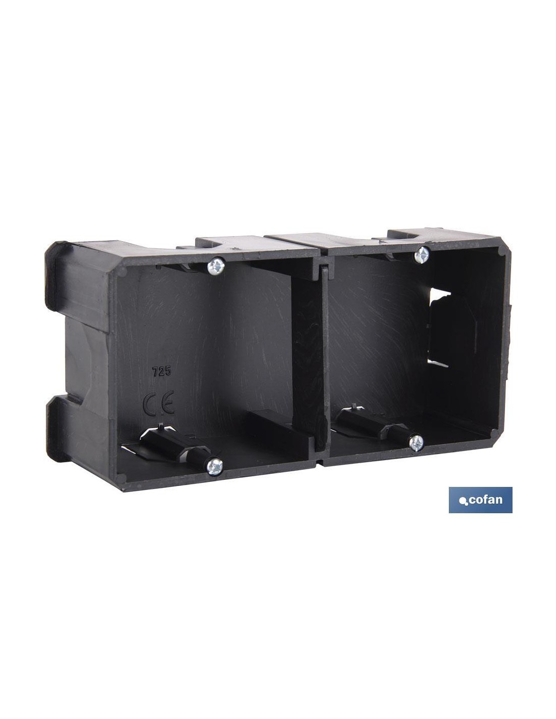 Especificaciones relevantes incluyen múltiples entradas para tubo de Ø 25 mm, lo que facilita la conexión y distribución eléctrica. Estas cajas son especialmente recomendadas para tabiques huecos o pladur.