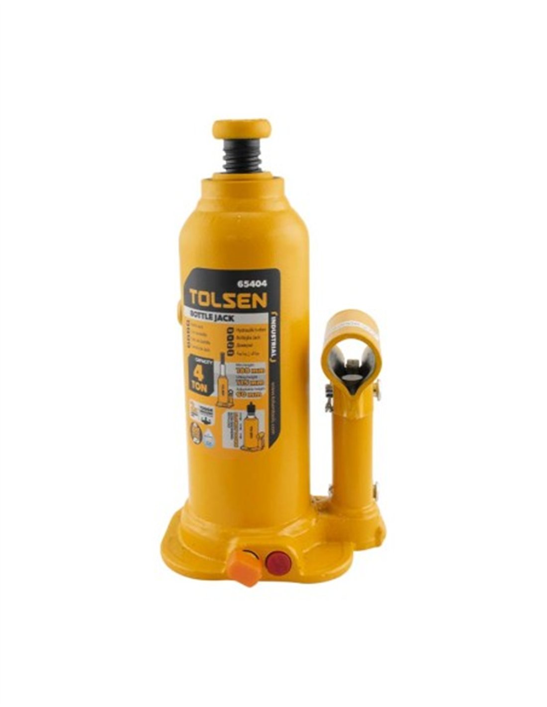 El gato hidráulico de botella TOLSEN de 6 toneladas es una herramienta robusta y confiable diseñada para facilitar el levantamiento de vehículos y maquinaria pesada. Este modelo cuenta con características que aseguran un rendimiento eficiente y seguro, siendo una opción adecuada para talleres y aplicaciones industriales.