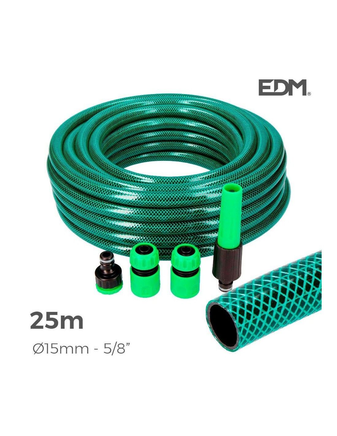 El Kit Manguera de Jardín Basic Line es la solución perfecta para regar tu jardín de manera eficiente y cómoda. Con un diámetro interior de 15mm y exterior de 19mm (5/8"), esta manguera de color verde viene en un rollo de 25m con accesorios incluidos para una instalación rápida y sencilla. Su diseño de 3 capas la hace flexible y resistente, mientras que su tratamiento anti UV y antialgas garantiza una mayor durabilidad y rendimiento.