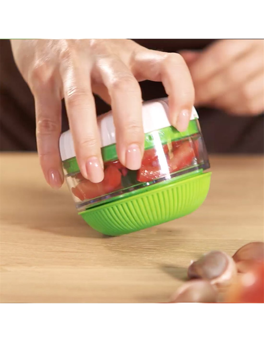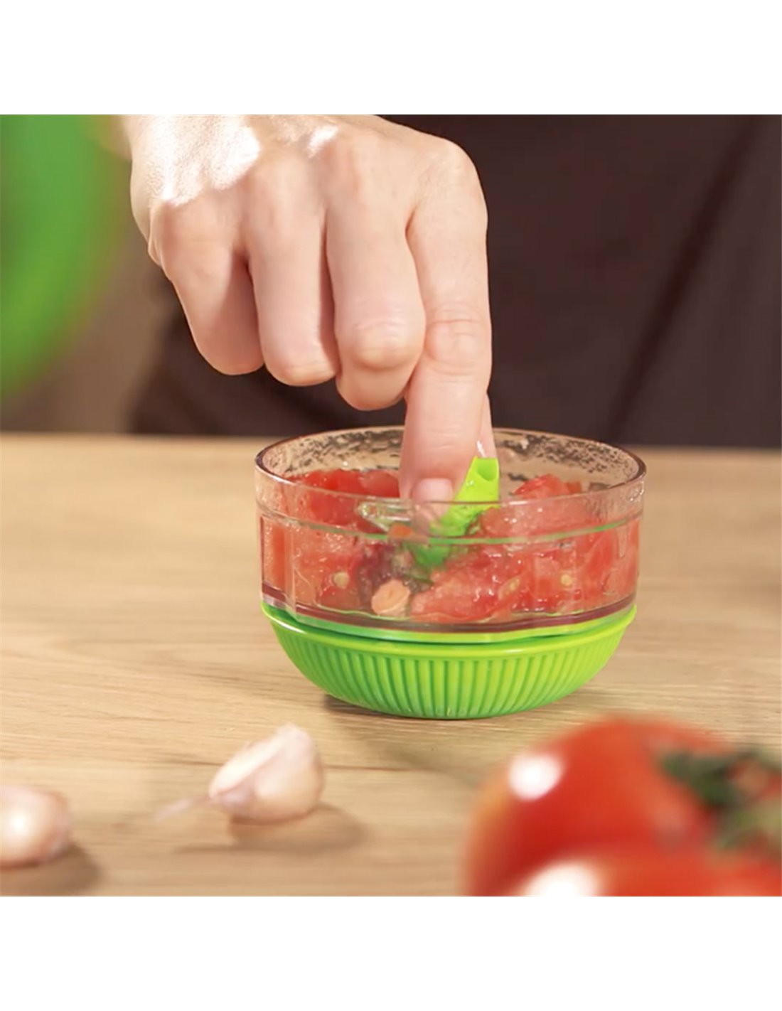 La picadora giratoria “Handy” es una herramienta de cocina eficiente y práctica, ideal para picar ingredientes de manera rápida y sencilla. Su diseño en color verde y blanco, junto con su construcción en plástico resistente, la convierte en un accesorio atractivo y duradero.