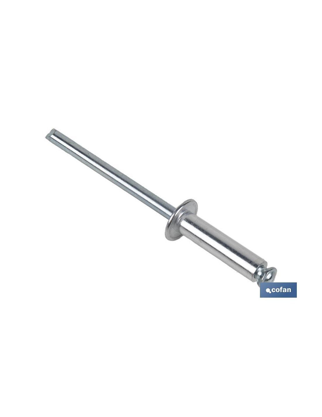 Recomendado para aplicaciones en construcción, reparación y proyectos de bricolaje. Compatible con diversos materiales, este remache es ideal para trabajos que requieren una sujeción firme y duradera.