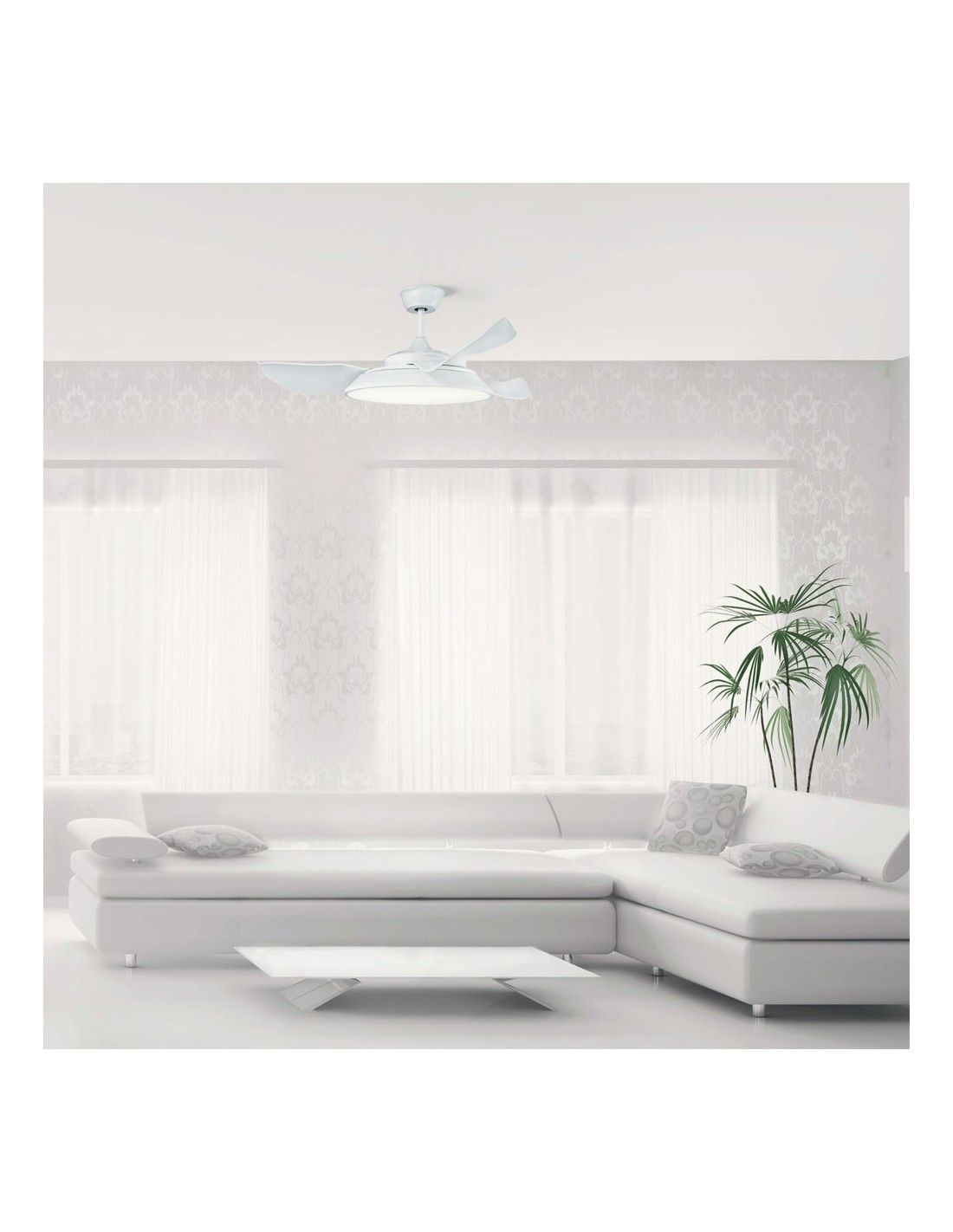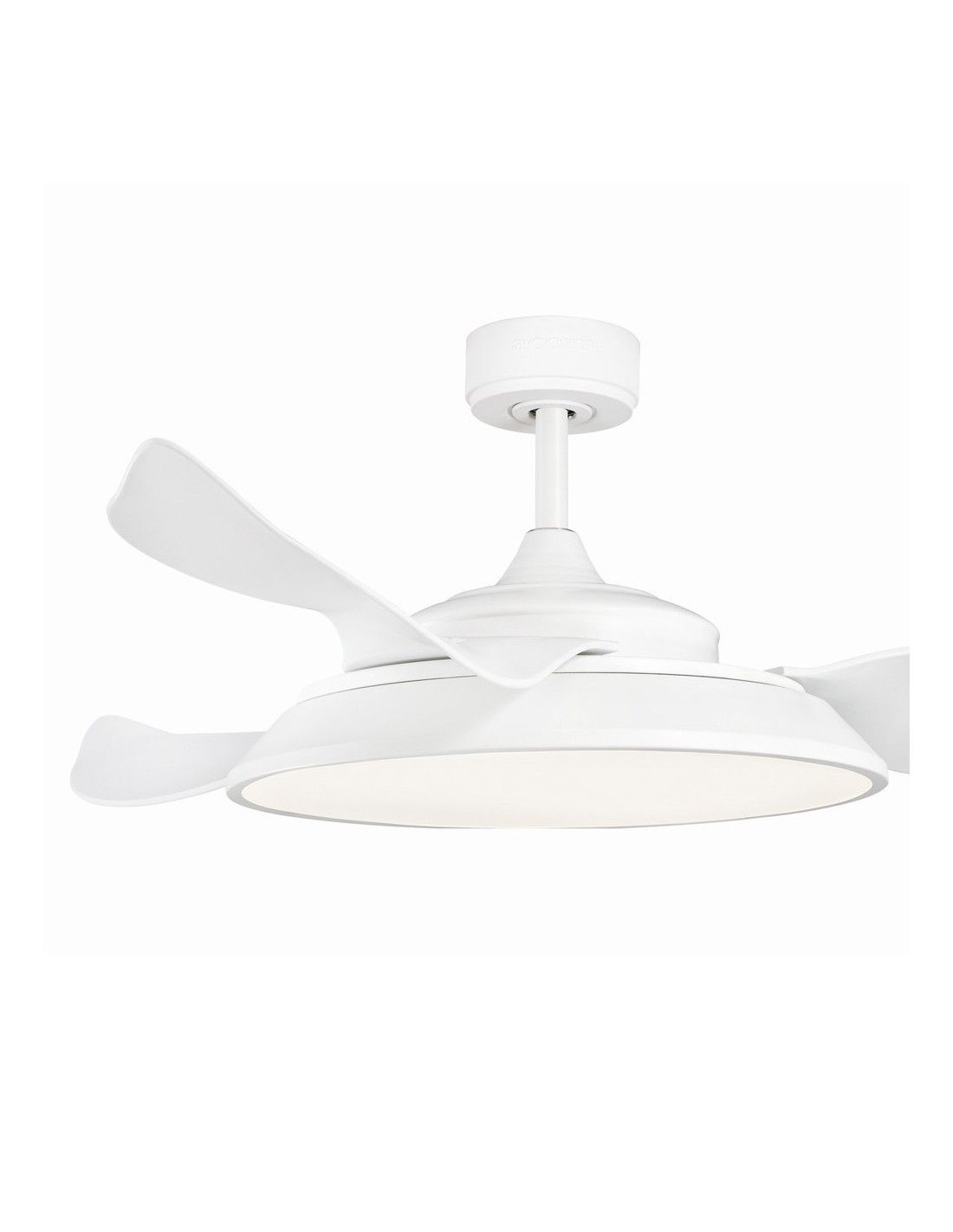 Ventilador de techo DC con 6 velocidades. LED de 55W CCT dimmable. Incluye dos tijas para instalar a diferentes alturas. Incluye mando con función de temporizador.
