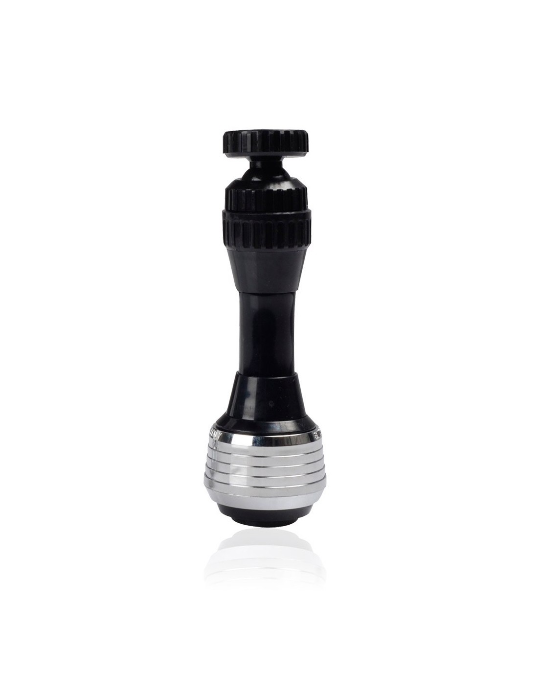 Atomiseur avec économiseur de 11 cm de long, idéal pour des robinets de rosage externe de 22 × 1 et interne de 24 × 1. Design ergonomique en noir et chrome, jet concentré ou douchage.