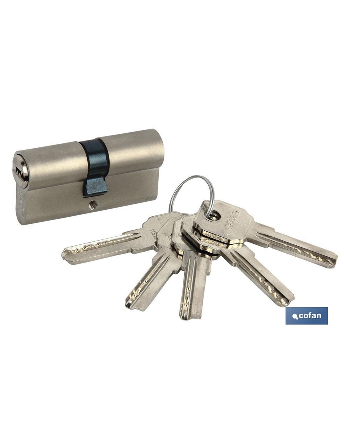 Cylindre de sécurité à clé normale, came longue. Fabriqué en acier et laiton. S-3111 EN1303:2005.19D CLÉ.5 broches en laiton.Couleur Laiton et Nickel.