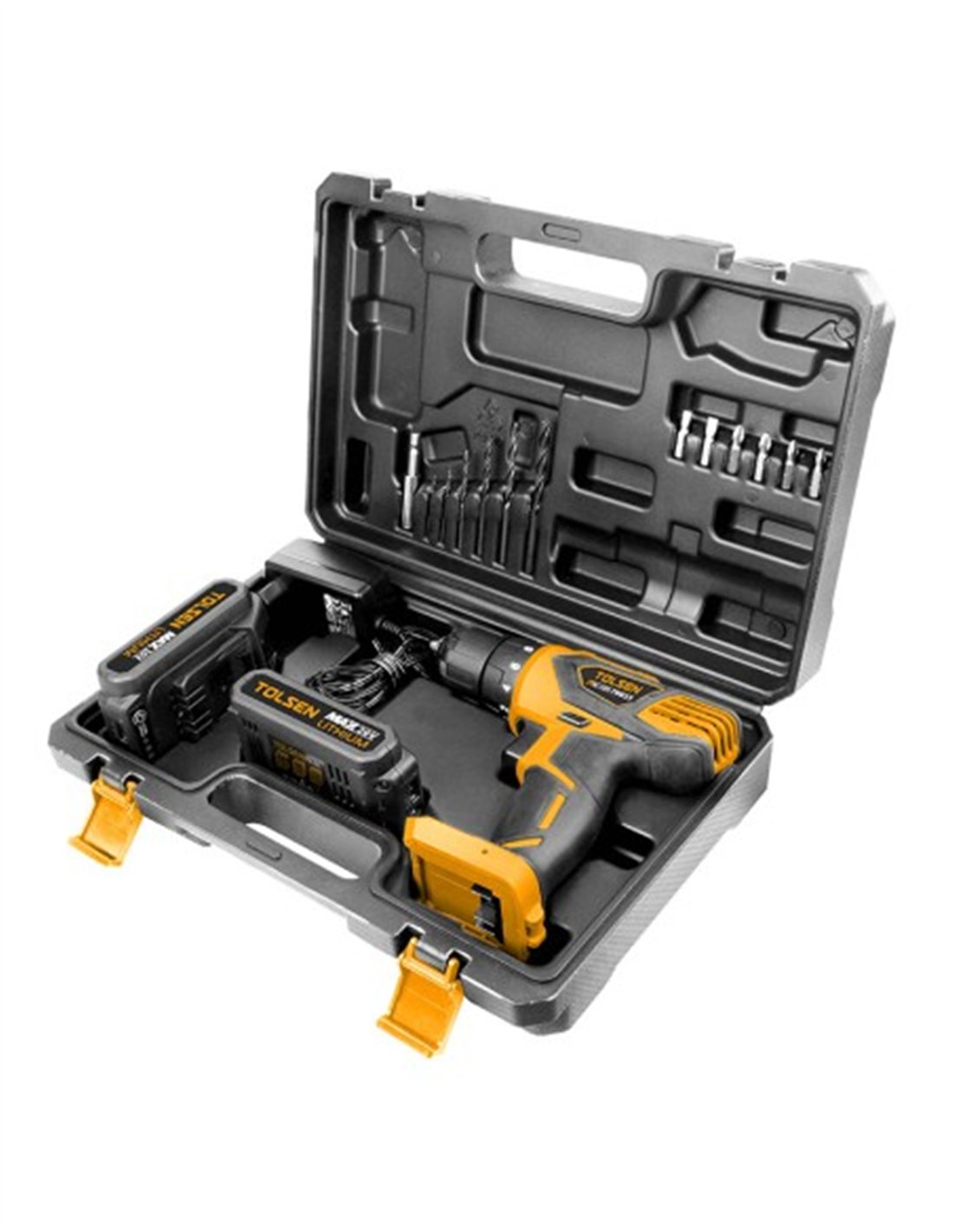 La perceuse-visseuse sans fil Tolsen 20 V est un outil polyvalent conçu pour offrir des performances optimales dans une variété de tâches de perçage et de vissage. Dotée de fonctionnalités avancées, cette perceuse offre confort d'utilisation et fonctionnalité, garantissant un travail précis et sûr.