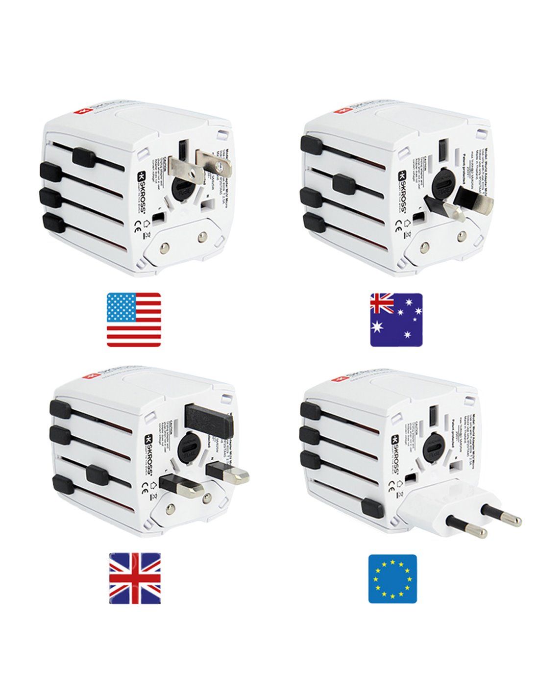 The SKROSS 1302180 Multi Travel Adapter is a practical accessory designed in Switzerland that will allow you to use your electronic devices anywhere in the world. With the ability to adapt to different types of plugs from Europe, Australia/China, United Kingdom, United States/Japan, this adapter is ideal for frequent travelers. Its input voltage of 100v-250v and maximum load of 2.5A guarantee safe and efficient operation. In addition, it has a replaceable fuse and does not convert voltage, so you can use your devices with complete peace of mind. Don't miss the opportunity to get this versatile adapter for your next trips!