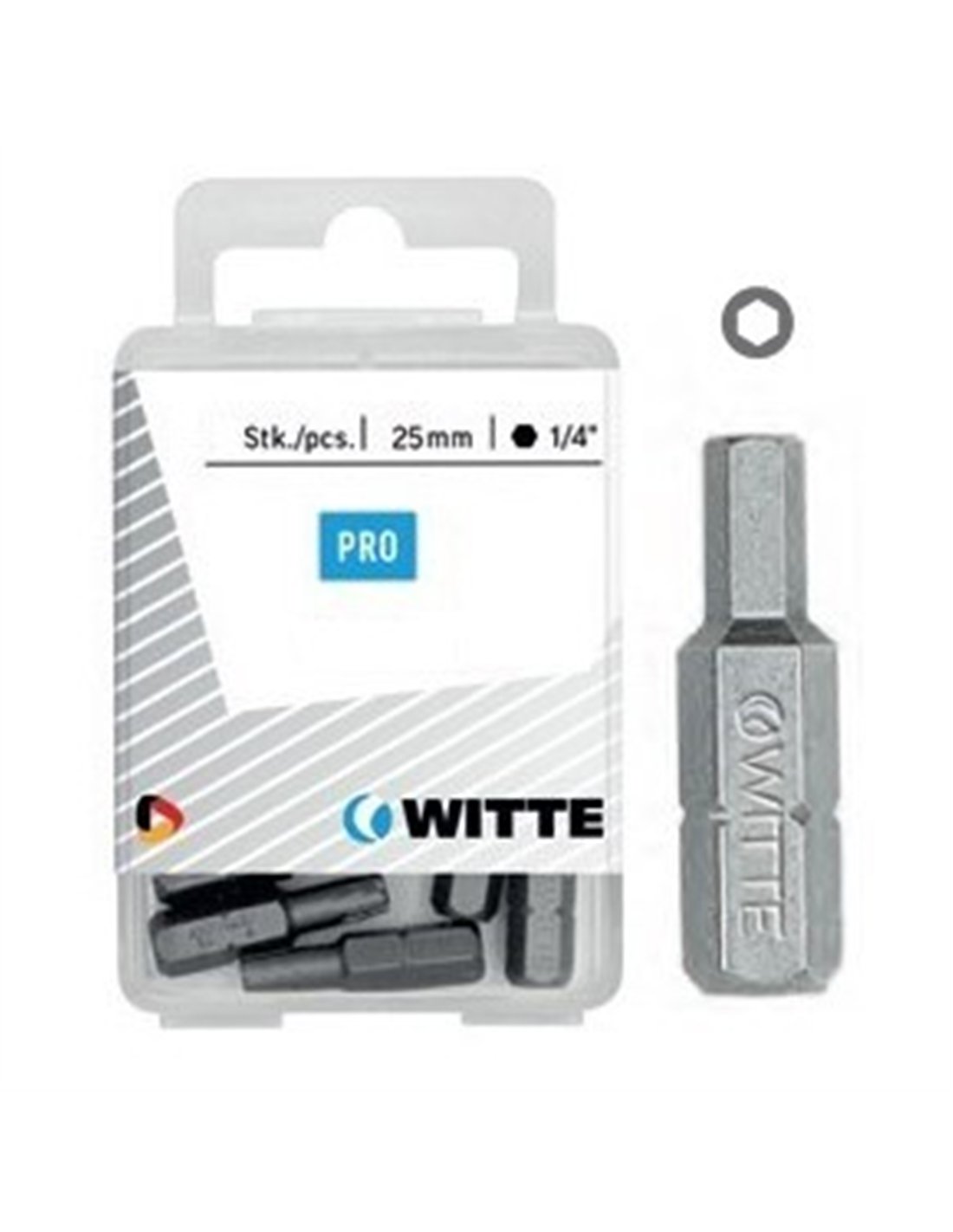Witte-427083-10 screwdriver bits are an essential tool for any professional or DIY enthusiast seeking precision and durability in their projects. Made from high-alloy steel, these bits have been designed using state-of-the-art technology and machinery, guaranteeing exceptional performance. The subsequent hardening process, combined with precise geometry, allows for optimal torque transmission, ensuring that each screw is tightened efficiently and securely. The longevity of these bits is directly related to their intrinsic quality, the perfect fit on the screw head, and their correct application during use.