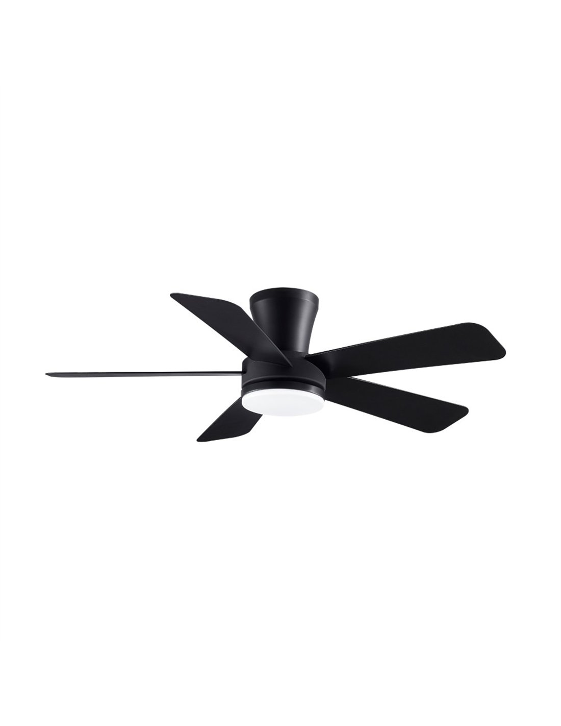 The Benda 5 Black LED Fan is a stylish and functional solution for keeping rooms between 13 and 20 m² cool. Its modern black design blends seamlessly with any decor, offering quiet and efficient performance thanks to its DC motor and 5 ABS blades. The integrated LED light, dimmable in intensity and color temperature (CCT), provides lighting that can be adapted to any need. Type: Ceiling fan with LED light Power: 28W Brightness: 2800 lumens Color temperature: Adjustable (CCT Dim) Speeds: 6 Blade material: ABS Color: Black Recommended room size: 13-20 m² Control: Remote control included Motor: DC (quiet and efficient)