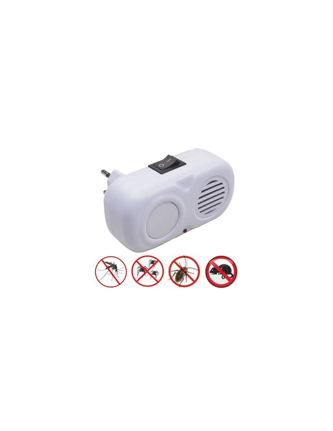 Universal ultrasonic repeller. - Action radius: 60 m². - Repels insects such as mosquitoes, spiders, cockroaches, etc. - With on and off button. - Article also known as: repels mosquitoes, insect repellent.