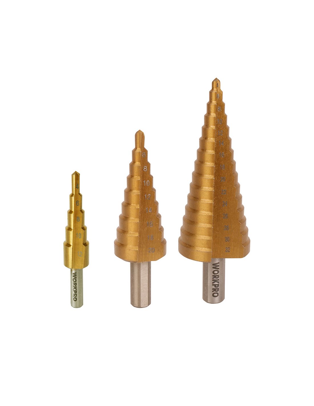 The WORKPRO HSS4241 Step Drill Bit Set is a versatile and efficient tool, ideal for drilling holes in a variety of materials. This set includes three step drill bits that allow different diameters to be obtained with ease, making them a practical option for professionals and DIYers. Its manufacture in HSS4241 material guarantees durability and resistance to wear, ensuring optimal performance in each use.