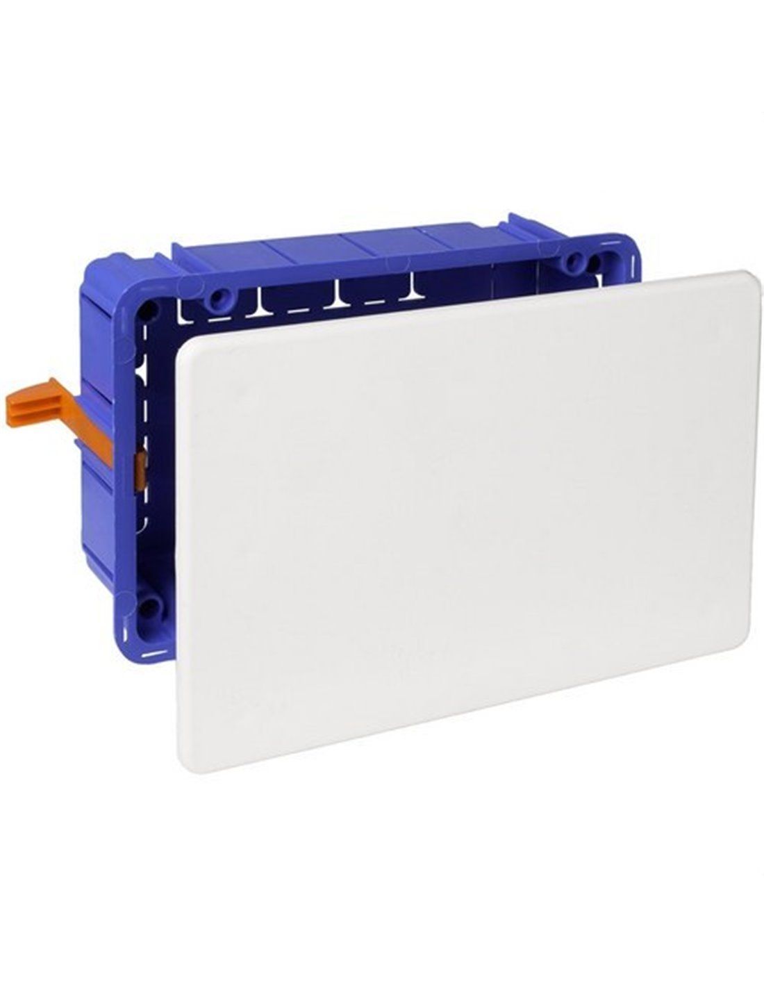 Connection box to embed in hollow partition 164x106x47mm with 16 entries for 25mm diameter tube with lid with metal claw. This model, made of halogen-free thermoplastic material, is intended for installation in hollow partition walls with fixing flanges that promise easy assembly. Among its characteristics, this product has a fire resistance of 850°C as a result of glow wire tests and the CE certificate.