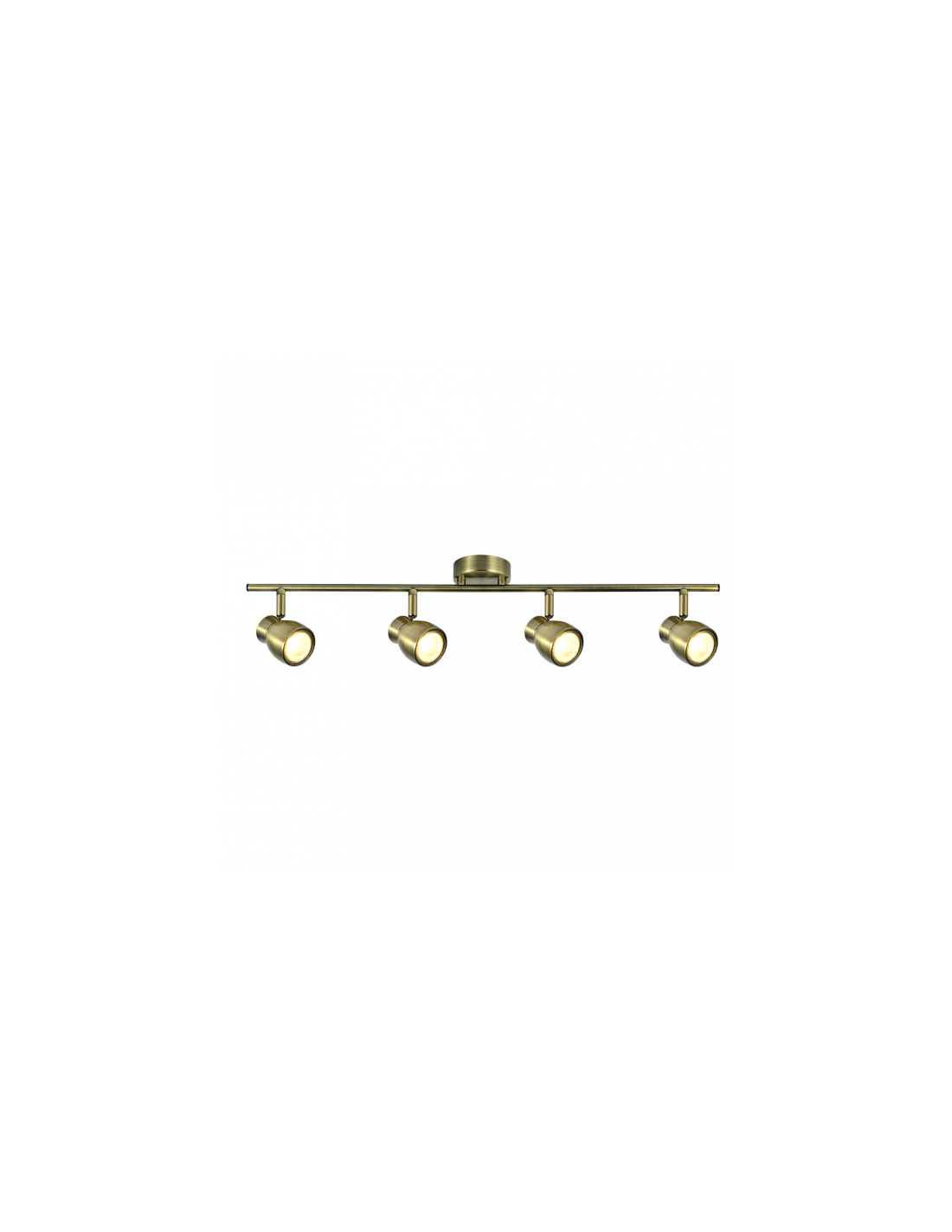 Strip with four spotlights from the CHACHO series in LEATHER color. Made of metal with four GU10 lamp holders. Bulbs not included. With a modern and original design with vertically articulated spotlights and a horizontal rotation of almost 360º, thus allowing the light points to be directed to any area of ​​the room. Its dimensions are 14X69.5X8.5 centimeters. Model also available in white/chrome and nickel/chrome. The collection can be completed with the three-light strip, two-light strip, three-light ceiling and one-light spotlight.
