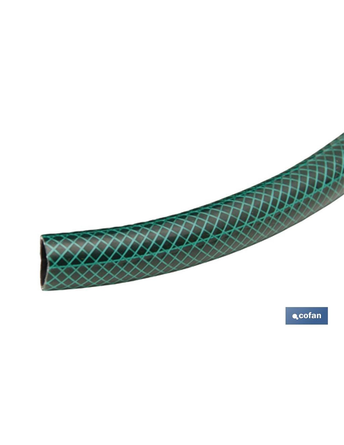 Roll of hose made of 3-layer PVC, ideal for irrigation tasks, cleaning cars, garages and common areas. Includes useful accessories such as an adjustable nozzle, 2 quick connectors and a quick connection with female thread. The hose has 3 layers and polyester thread mesh that guarantee flexibility and high burst pressure. It is light, easy to handle and comfortable to roll thanks to its great flexibility.