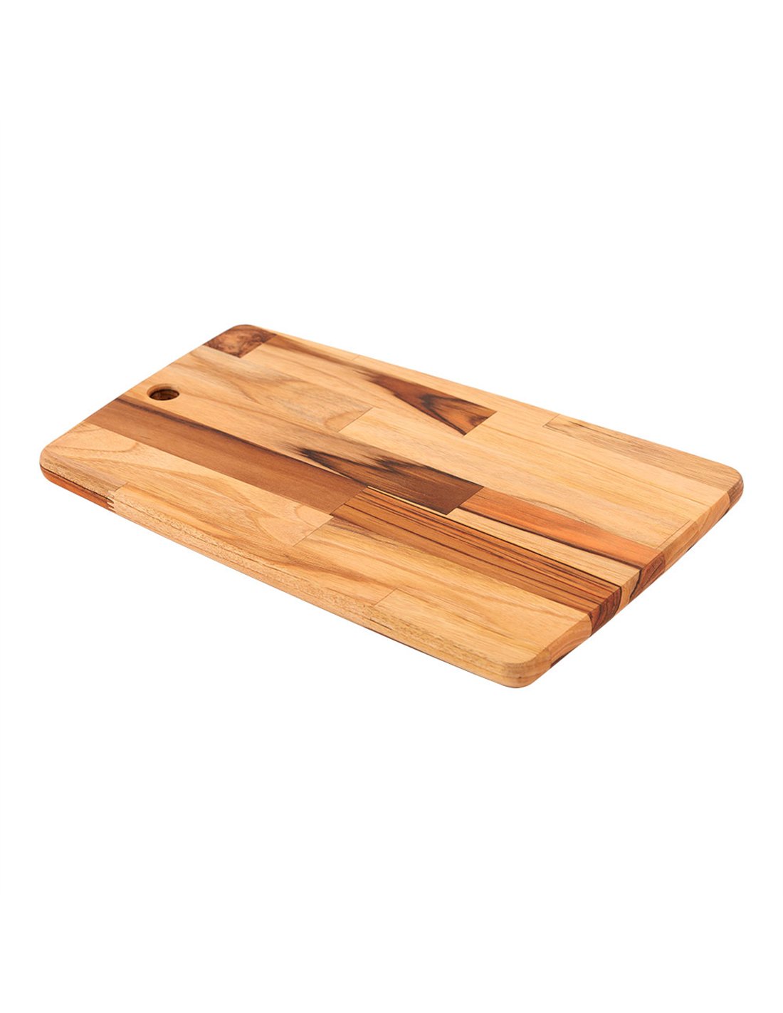 Rectangular teak wood cutting and serving board, FSC® certified, measuring 40 x 28 x 1.8 cm. Its mineral oil finish protects the wood, enhances its natural beauty, and provides a hygienic, moisture-resistant surface. It includes a sisal rope for easy hanging, making it a practical and functional addition to any kitchen. Ideal for preparing and presenting your dishes.