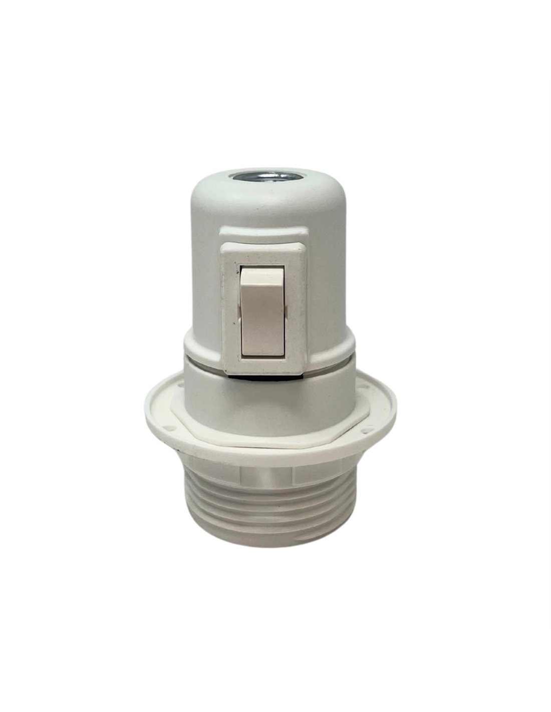 The E27 lamp holder with semi-threaded switch and washer is a practical and functional lighting solution. Designed to withstand voltages up to 250V, this model adapts to various installation needs, ensuring optimal performance. Measuring ø60 x 80 mm, its compact design allows for easy integration into different types of light fixtures. The white finish provides a clean and modern look, ideal for any environment.