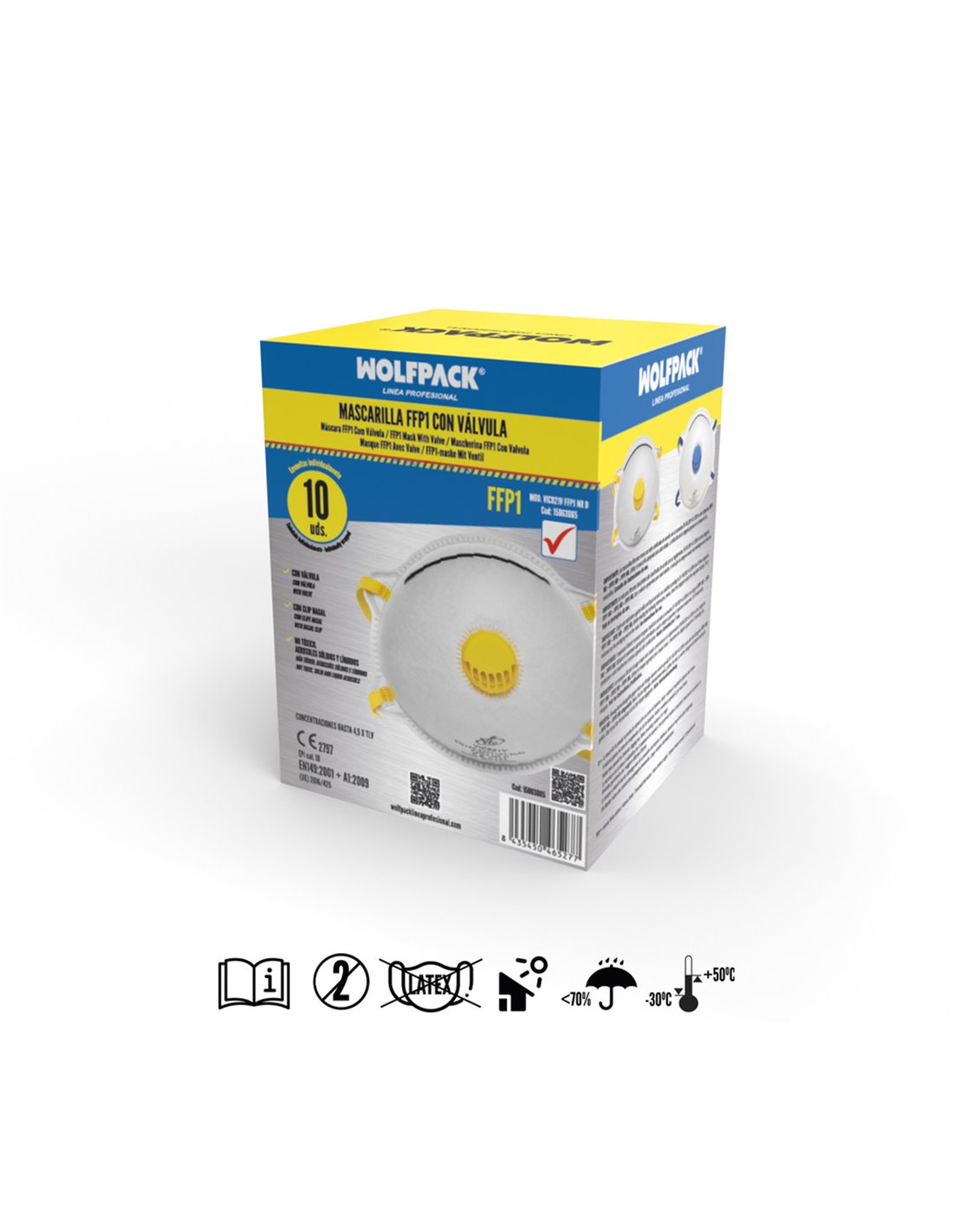 The FFP1 Rigid Face Mask with Valve is a personal protective equipment (PPE) device designed to provide an effective barrier against airborne particles. Its rigid structure ensures a secure and comfortable fit, while the exhalation valve allows for easier breathing, reducing the buildup of heat and moisture inside the mask. Each mask is individually packaged, ensuring hygiene and facilitating transport. This mask features a nose clip with a cushion that allows for a customized fit, improving the seal and comfort during use. CE certified, it is suitable for concentrations up to 4.5 TLV, making it a reliable choice for various applications.