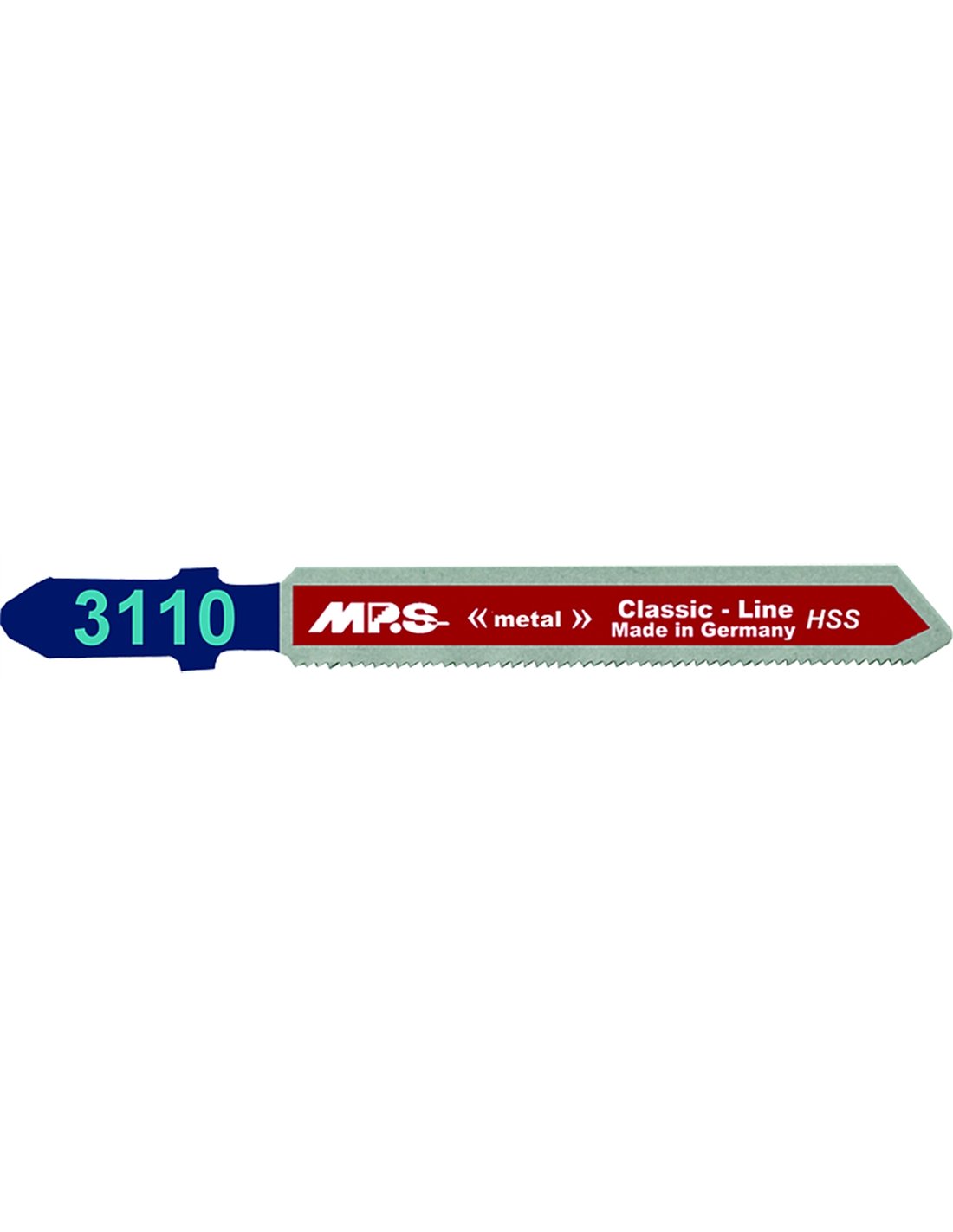 The MPS-3110-2 jigsaw blade is designed to deliver precise and controlled cuts in thin metals, such as sheet steel and aluminum. It belongs to the MPS Classic-Line-Metal range, focused on high-precision work on non-ferrous metals, making it ideal for both professionals and technical DIY enthusiasts. With a total length of 75 mm and a usable cutting length of 50 mm, this blade is optimal for metal materials with a thickness between 0.5 and 1.5 mm.