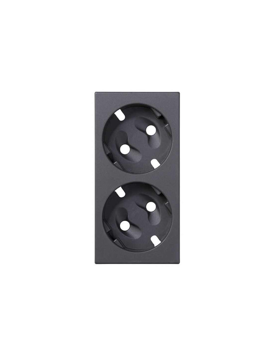 Model for double lid 50001041-038 Base mechanism Schuko plug Simon Cima 500 series. Display element without directed to complete outlets in different work surfaces led. It presents a finished design and graphite tones. It is a piece of version two modules for electrical installations requiring be combined with a base plug Schuko double format.