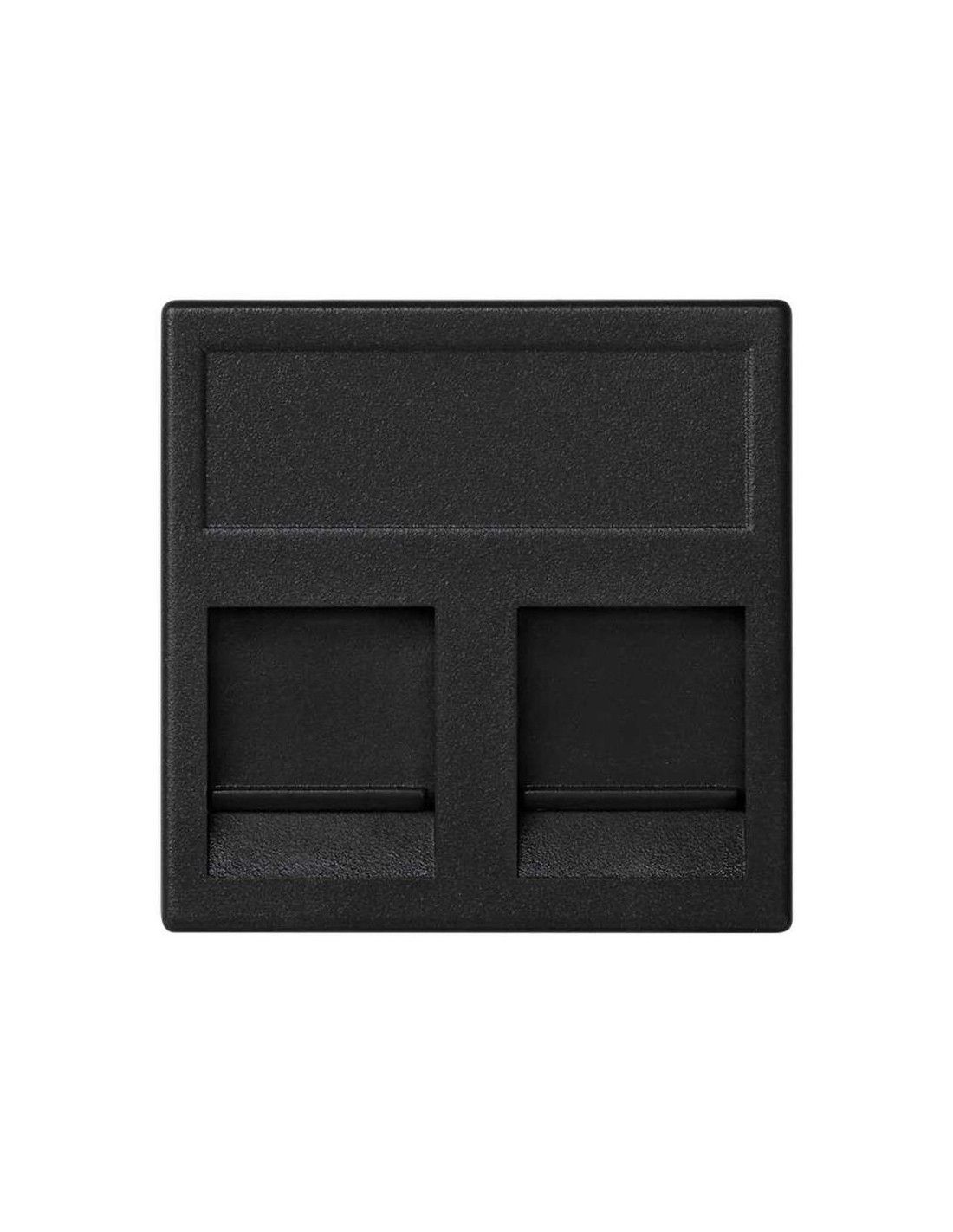 Flat voice and data plate with dust cover 1 element for 2 RJ45 compatibility other manufacturers graphite Simon K45. This flat voice and data card is from the Simon K45 series. It incorporates a dust cover window and has an element for two RJ45 connectors. One of its main characteristics is that it is compatible with other manufacturers. This Simon plate is committed to a novel design, finished in graphite gray. The availability of this flat voice and data card is for one or two connectors. It can be installed in two ways (recessed or on a surface). In the case of wanting to combine it in any envelope, use the positioner at 90 degrees (Ref. K66). The compact design owes it both to innovative materials and to its small dimensions (45x45mm and a depth of 8.5mm). It is made through thermoplastic components, which withstand high temperatures, and are halogen-free, to ensure safety during use. Servicing of the Simon K45 series boards is very simple. You just need to use a soft, dry cloth to clean them.