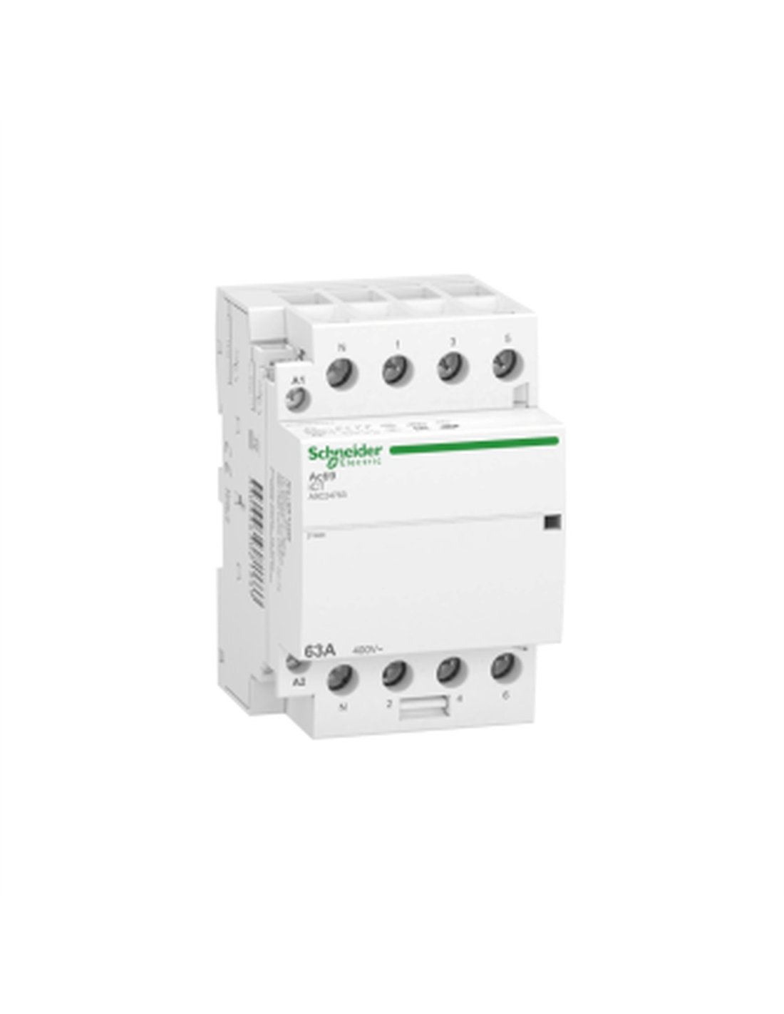 The Acti9 iCT 63 A 4NA LED is a high-efficiency connector designed for lighting applications, part of the Acti9 range. This device is characterized by its robustness and versatility, making it ideal for small businesses and residential environments. With a 3P + N configuration, the iCT offers a rated operating current of 63 A on AC-7A and 20 A on AC-7B, guaranteeing optimal performance under various operating conditions.