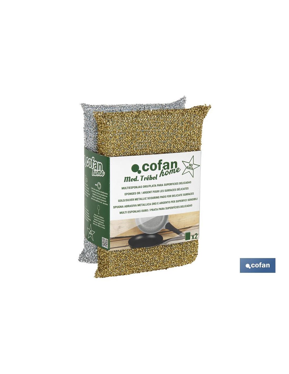 Le Multi-Spugne Colore Oro e Argento sono spugne rivestite con fibre flessibili che consentono una pulizia più efficace, veloce e confortevole senza graffiare grazie alla rivestimento lucido non abrasivo. La spugna interna genera abbondante schiuma, facendo risparmiare sui prodotti per la pulizia. Sono ideali per le zone delicate come vetro-ceramica, superfici antiaderenti e in generale superfici che necessitano di maggiore cura. Disponibile in due colori.