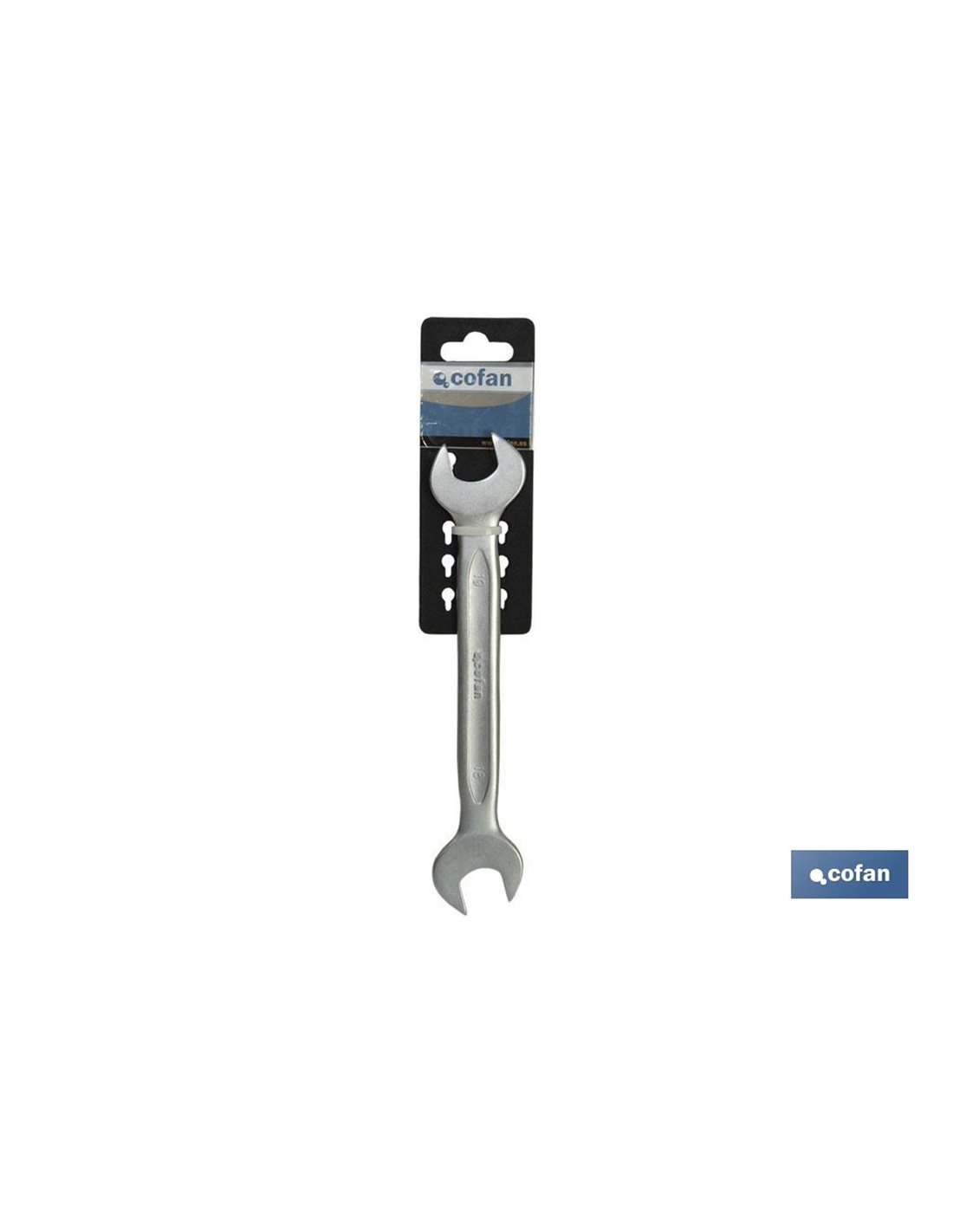 Chiavi fisse a doppia bocca lucidate. Pratica chiave combinata con impugnatura sicura e stabile. Il materiale di cui è composto è acciaio cromato di alta qualità e resistente, che consente una maggiore durata del prodotto. Questo modello ha misure da 6-7 mm a 55-60 mm. L'utilità di questo tipo di chiave sta nell'allentare o stringere dadi e viti.