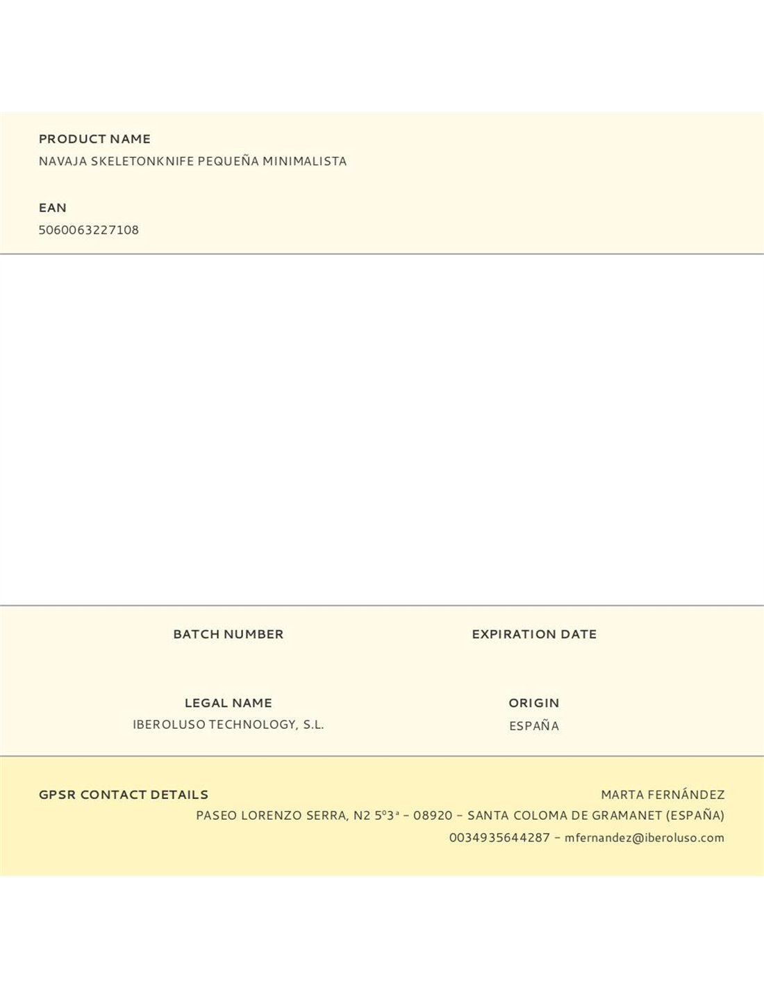 Il coltello Skeleto è leggero e compatto, il che lo rende facile da trasportare. Le sue dimensioni lo rendono ideale da portare in tasca o a mano, ed è dotato di un anello integrato che consente di agganciarlo a un portachiavi o a una cintura, assicurandosi che sia sempre a portata di mano quando ne hai bisogno.