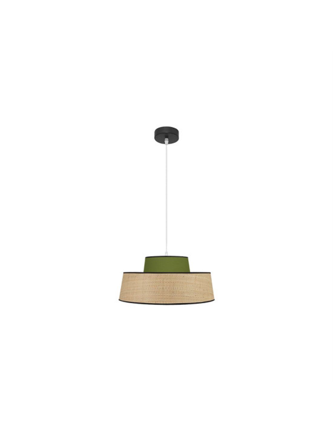 Pendente della serie JIA in colore NATURALE/VERDE. Realizzato in metallo e tessuto. Dallo stile moderno e semplice, allo stesso tempo elegante e originale, ideale sia per camere da letto, soggiorni e soggiorni dedicati al riposo, che per sale da pranzo e luoghi di lavoro. Ha un portalampada E27. Lampadina non inclusa. Ha dimensioni regolabili in altezza di 47<, 110Xx40x40 centimetri e un peso netto di 660 grammi. In questa serie possiamo trovare sia il pendente diametro 50 centimetri che il pendente diametro 40 centimetri, e un modello da tavolo. Disponibile anche nei seguenti colori: naturale/turchese, naturale/grigio, naturale/nero, naturale/verde, naturale/zucca e naturale/bianco.