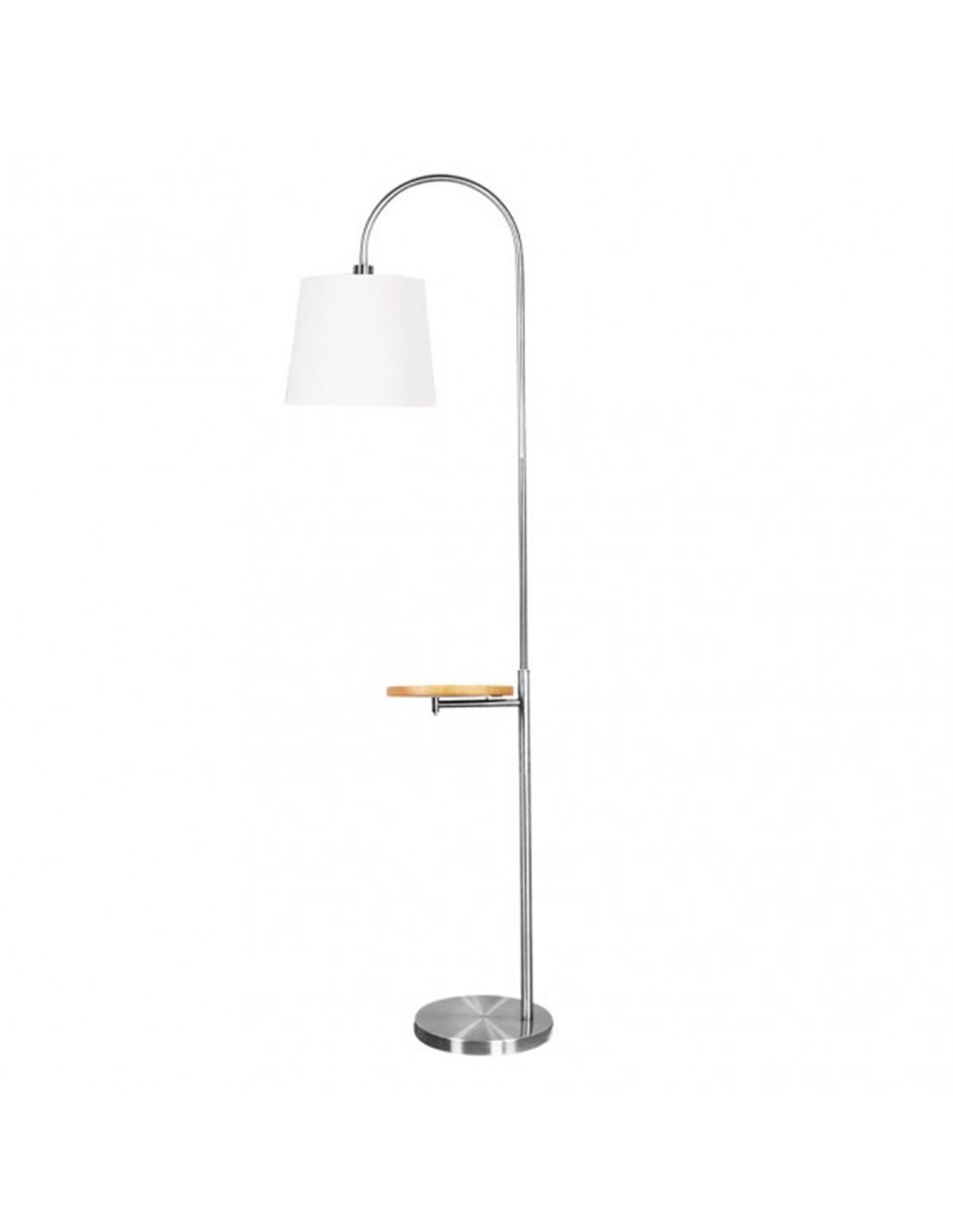 Piede da terra della serie MARFIL in colore NICHEL con schermo BIANCO. Realizzato in metallo, legno e tessuto. Il suo design moderno si distingue con un tavolino resistente con finitura in faggio, che lo rende versatile e utile oltre che un elemento decorativo che aggiunge eleganza alla stanza, altamente consigliato per camere da letto senza spazio per i comodini, per soggiorni e sale d'attesa con poco spazio. Ha un portalampada E27. Lampadina non inclusa. Le sue dimensioni sono 180x30x52 centimetri. Modello disponibile anche in color cuoio con sfumatura beige.