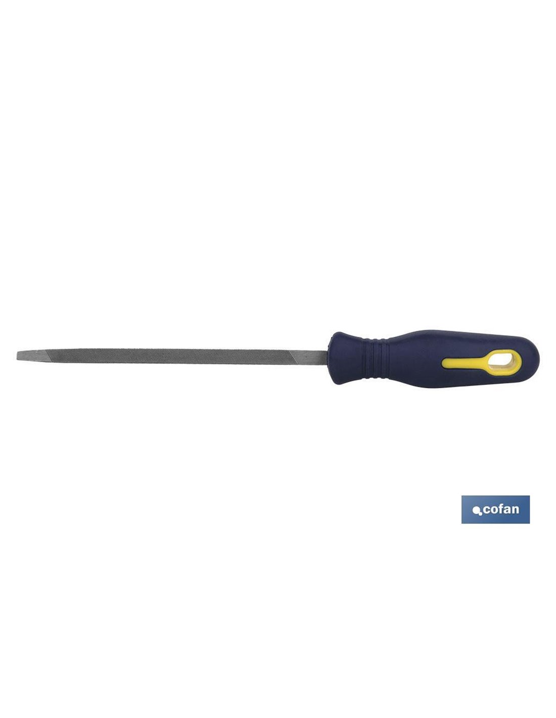Lima triangolare extra sottile con manico sostituibile, con lunghezze di 4" e 5". Ha una maniglia in plastica, molto comoda, ergonomica e pratica per la presa, offrendo un'esperienza confortevole. I suoi denti sono di precisione, rivestiti per una maggiore durata. Ha un foro nel manico per poterlo appendere facilmente sul posto di lavoro. È molto adatto per affilare e limare oggetti più delicati. Adatto per l'uso quotidiano e professionale.