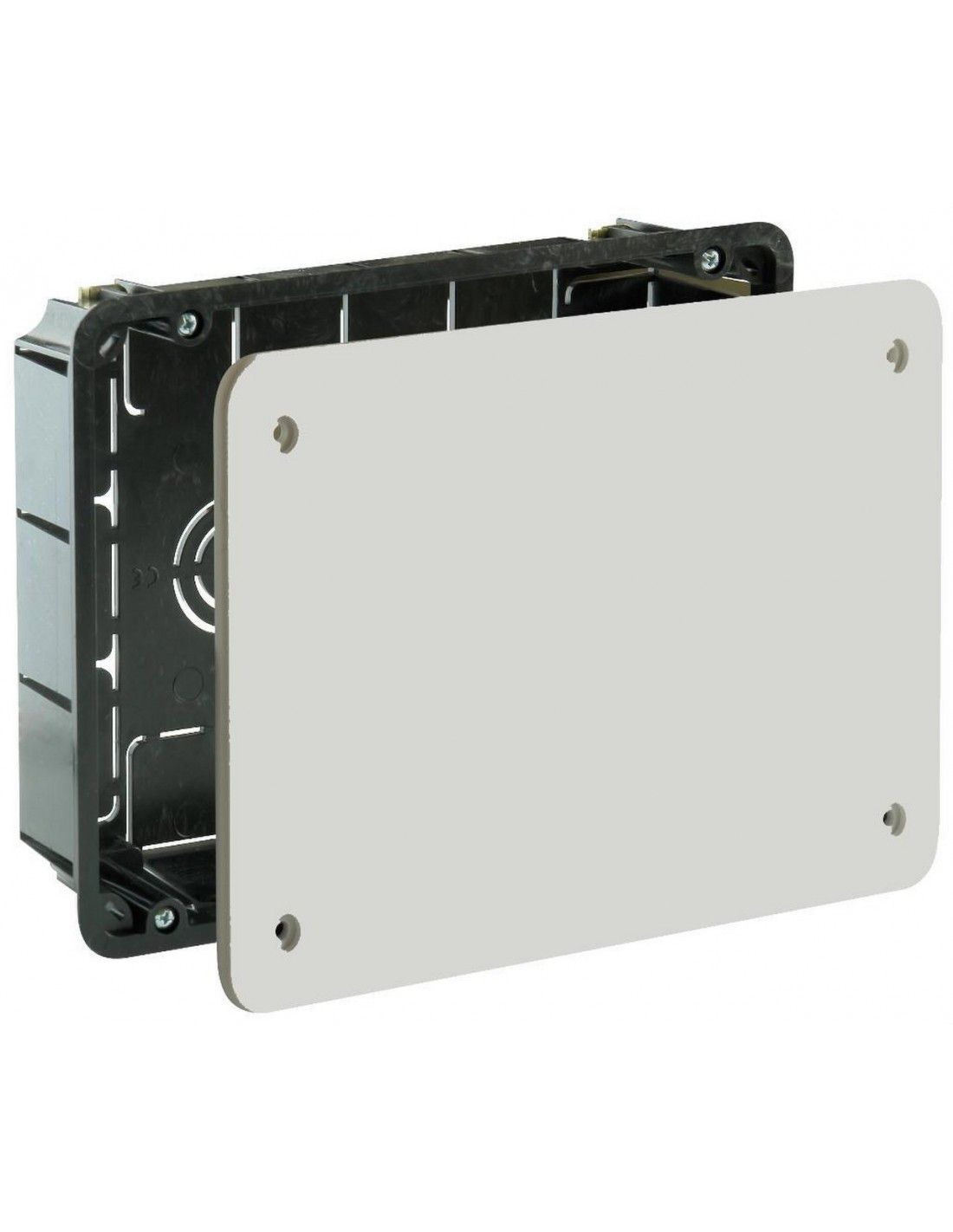 Scatola di connessione da incasso in tramezzo vuoto. 164 x 106 mm. Coperchio con viti, profondità 47 mm. 16 ingressi per tubo diametro 25 mm. Può essere utilizzato come record di tipo C per ICT.