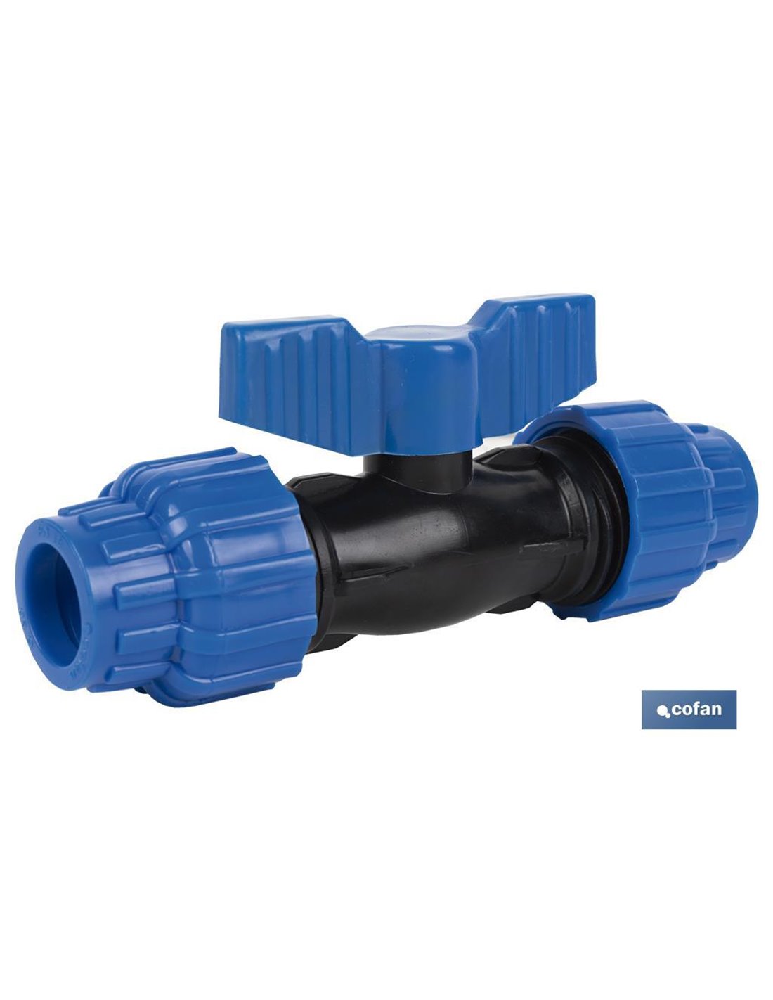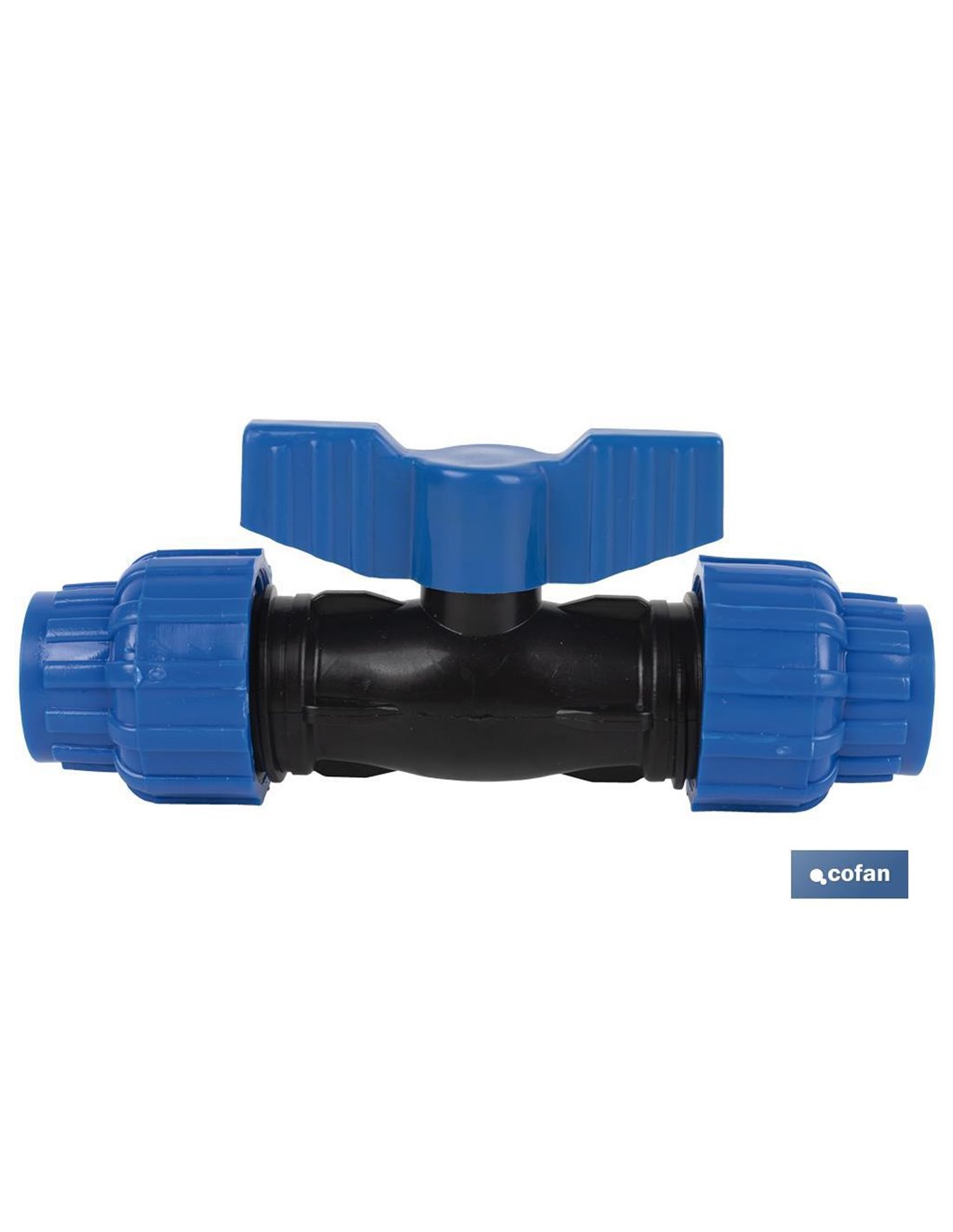 Valvola a sfera con due attacchi della stessa dimensione per tubi in polietilene (PE). Adatto per lavorare in impianti di conduzione idrica con pressione nominale di 16 bar. Questa valvola a sfera è realizzata in polipropilene resistente e di alta qualità con finitura nera, due dadi e una leva blu. Ha una guarnizione di tenuta in EPDM che garantisce una vestibilità forte, durevole e senza perdite. Disponibile in diverse dimensioni. Può essere acquistato in confezione o singolarmente.