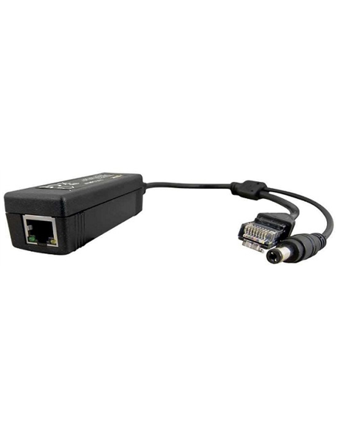 El splitter POE SP-POE12 está diseñado para alimentar dispositivos IP que requieran 12V CC mediante un conector externo. Es útil para alimentar, mediante switch PoE, dispositivos MEET no PoE (monitores MIO y placas MILO). Está basado en un convertidor CC/CC que reduce el voltaje desde 44-57V CC hasta 12 V CC. La corriente máxima de salida es de 1,35 A (P max = 15 W). El voltaje de salida (POWER) y los datos (DATA) entran en el splitter a través del conector RJ45 de entrada, provenientes de un dispositivo PoE. Los datos (DATA) se suministran mediante un conector RJ-45 y la alimentación de 12 V CC mediante un conector CC. Características Alimentación para dispositivos MEET: 1,25A/12V CC Rango de voltaje de entrada: 44÷57V CC Alto rendimiento: 84% Diseñado para redes de 10Mbit/s y100Mbit/s Indicaciones luminosas mediante LEDS. Proteccioones: Frente a cortocircuitos SCP Frente a sobrecargas OLP