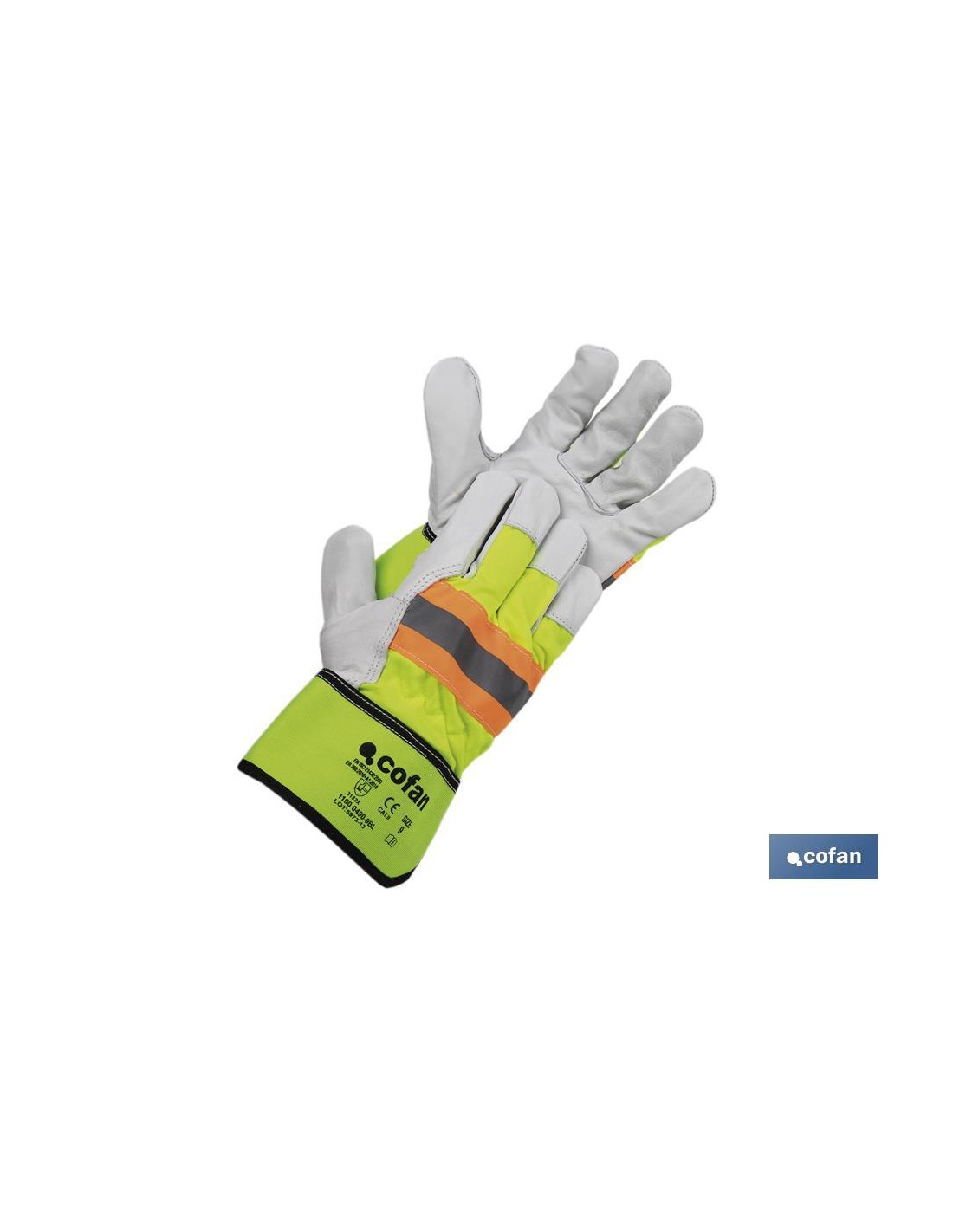 Luvas de couro vacuno com dorso refletivo, ideais para diversas aplicações.