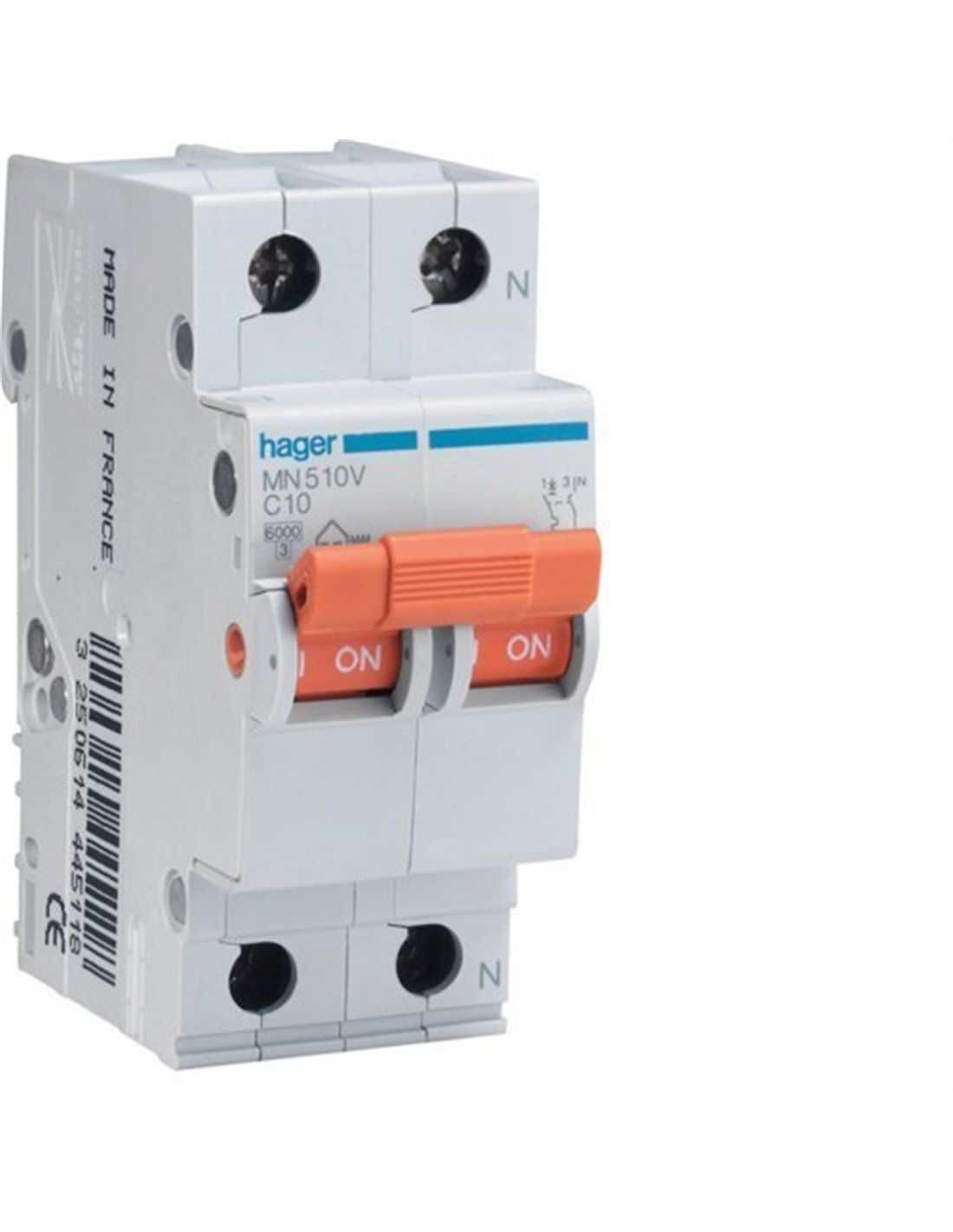 HAGER MN510V | Interruptor automático MN 1P+N 10A curva C